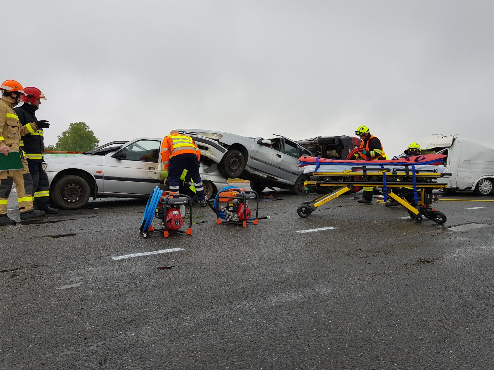 Situace, která není tak nereálná, byla nasimulována pro zasahující jednotky ze stanic HZS Beroun a Hořovice a dobrovolné jednotky obcí Komárov, Králův Dvůr, Zdice a Rudná, které jsou předurčené pro zásahy u dopravních nehod. Jednotky použily celkem pět sad hydraulických vyprošťovacích zařízení. Všude tak kromě křiku a nářku raněných byl slyšet i hluk z běžících agregátů. Hasiči měli možnost vyzkoušet si vyprošťování osob z vozidel, která byla různě zdemolovaná, což výrazně komplikovalo přístup k raněným.