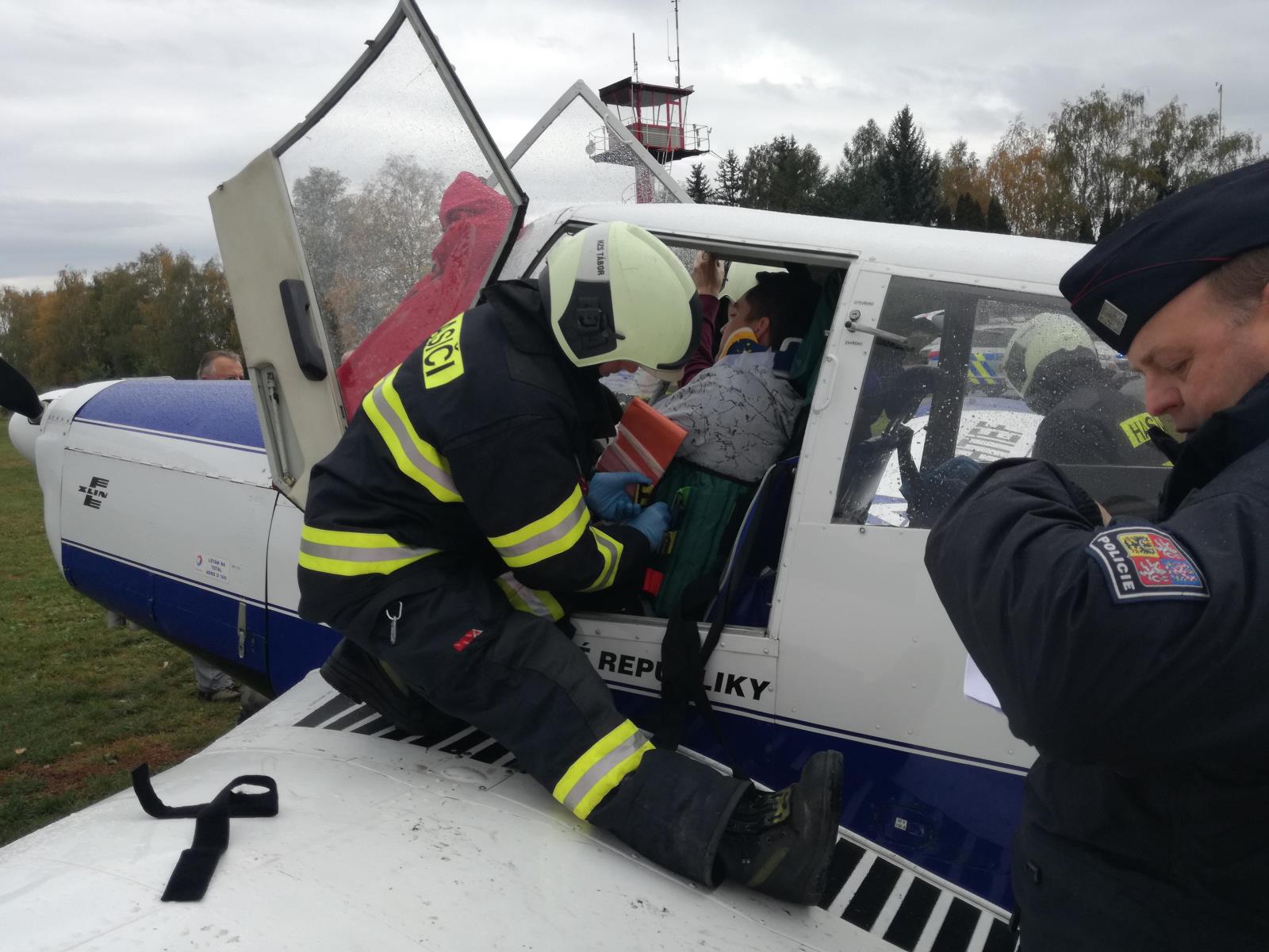 10.19.2017 v deset hodin dopoledne – stejně tak jako obě předcházející cvičení – startovalo také cvičení v Táboře. Tématem taktického cvičení bylo nouzové přistání malého dvoumístného letadla na letišti Aeroklubu v Táboře. Do cvičení se zapojily všechny složky integrovaného záchranného systému, z jednotek požární ochrany to byla profesionální jednotka ze stanice Tábor. Úkolem hasičů bylo zajistit předlékařskou první pomoc jednomu zraněnému členu posádky a předat ho do péče ZZS. Zároveň táborská jednotka zajistila letadlo proti vzniku požáru.