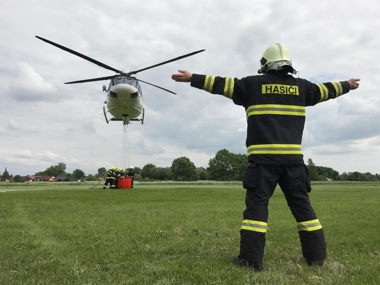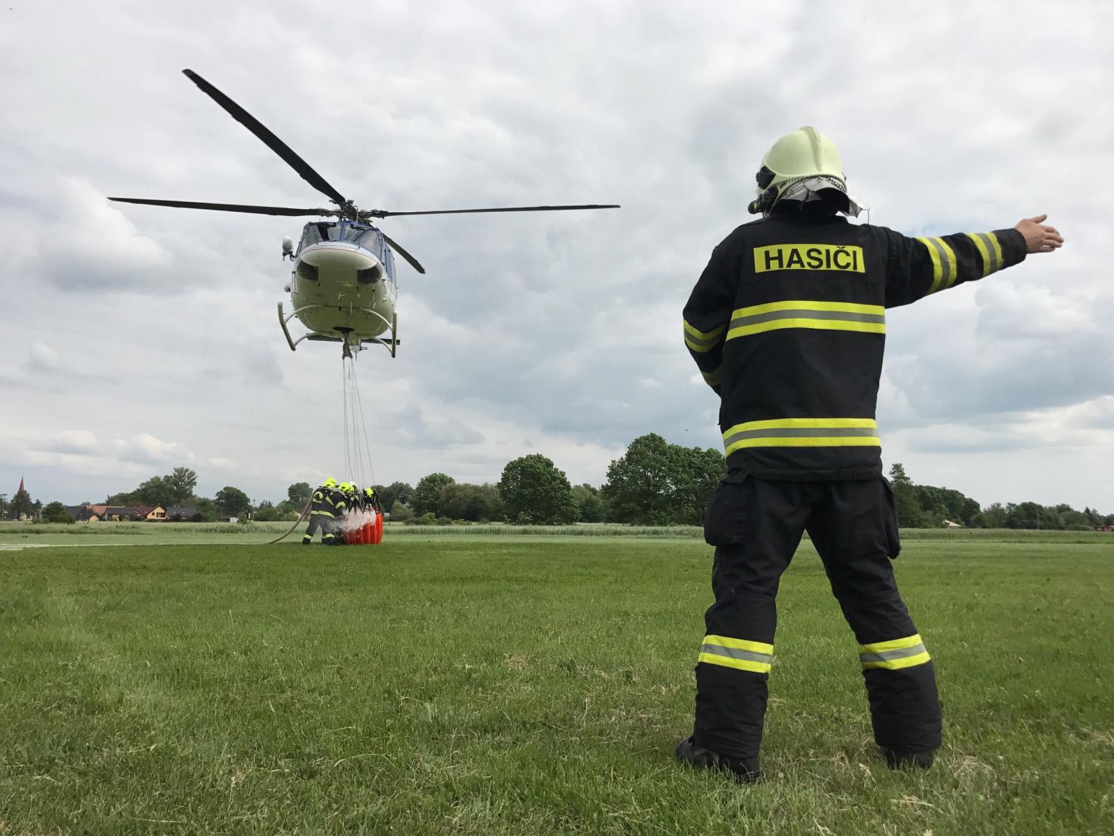 Po naplnění vrtulník odletěl a vyprázdnil vak a vrátil se. Pokračovalo další družstvo. Jeden člen letecké hasičské služby navigoval vrtulník a druhý instruoval a dohlížel na činnost při plnění bambivaku. Každé družstvo si celý postup vyzkoušelo několikrát,“ uvedl mjr. Ing. Pavel Bér z HZS Pardubice.