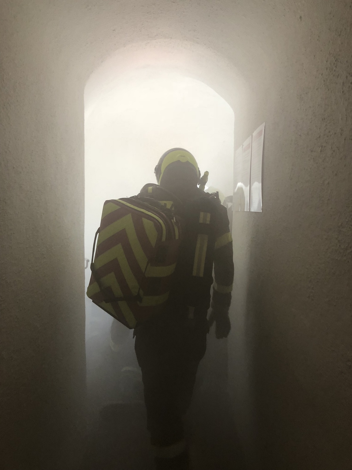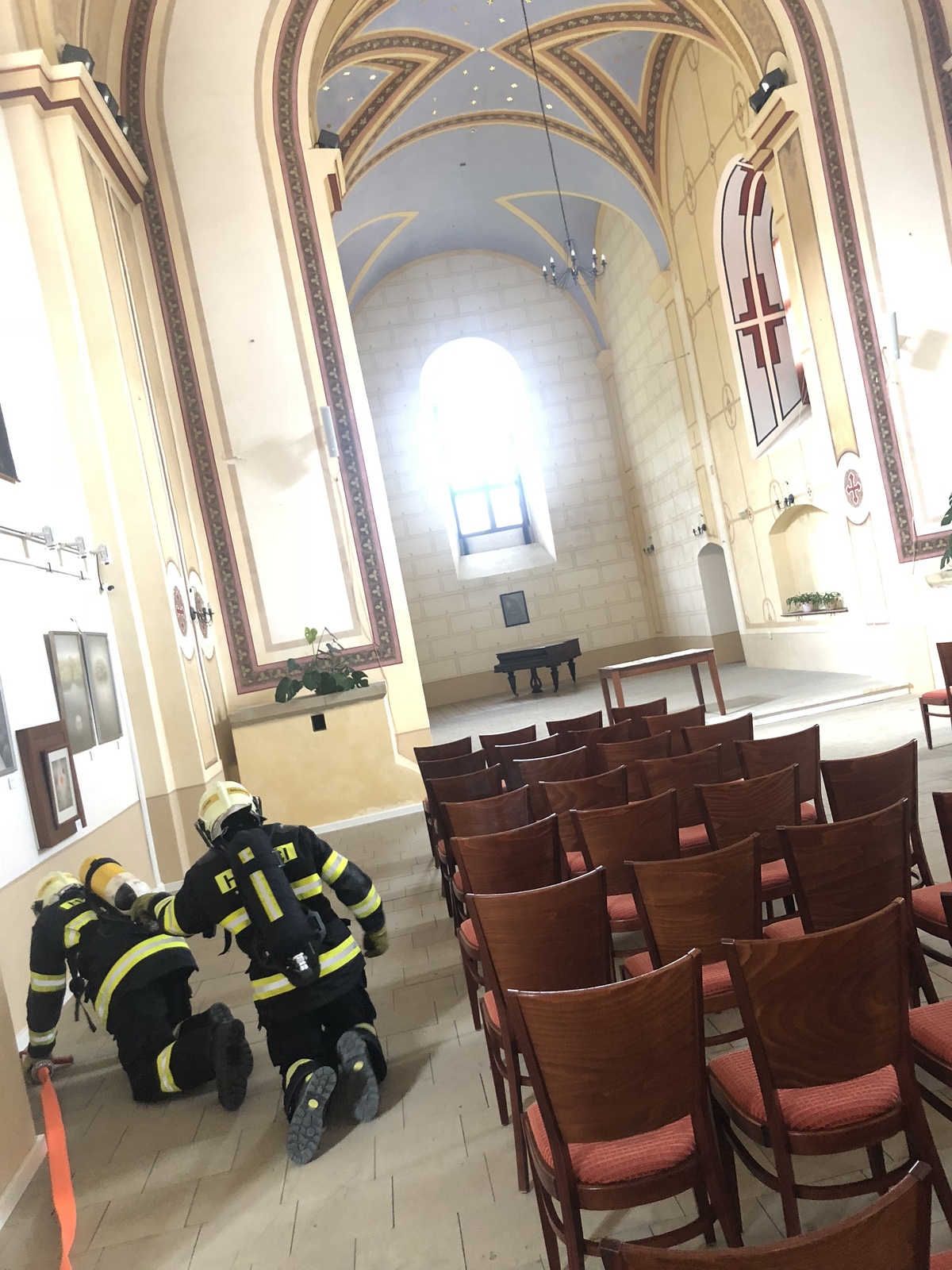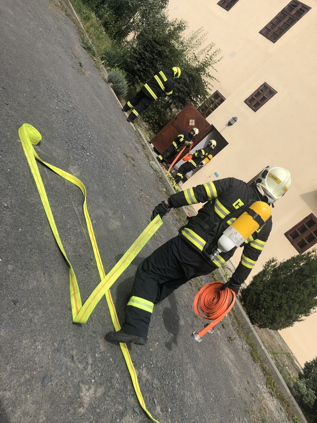 Hasiči zde rovněž v dýchací technice procvičili techniky bojového rozvinutí a pohybu v neznámém zakouřeném prostředí.