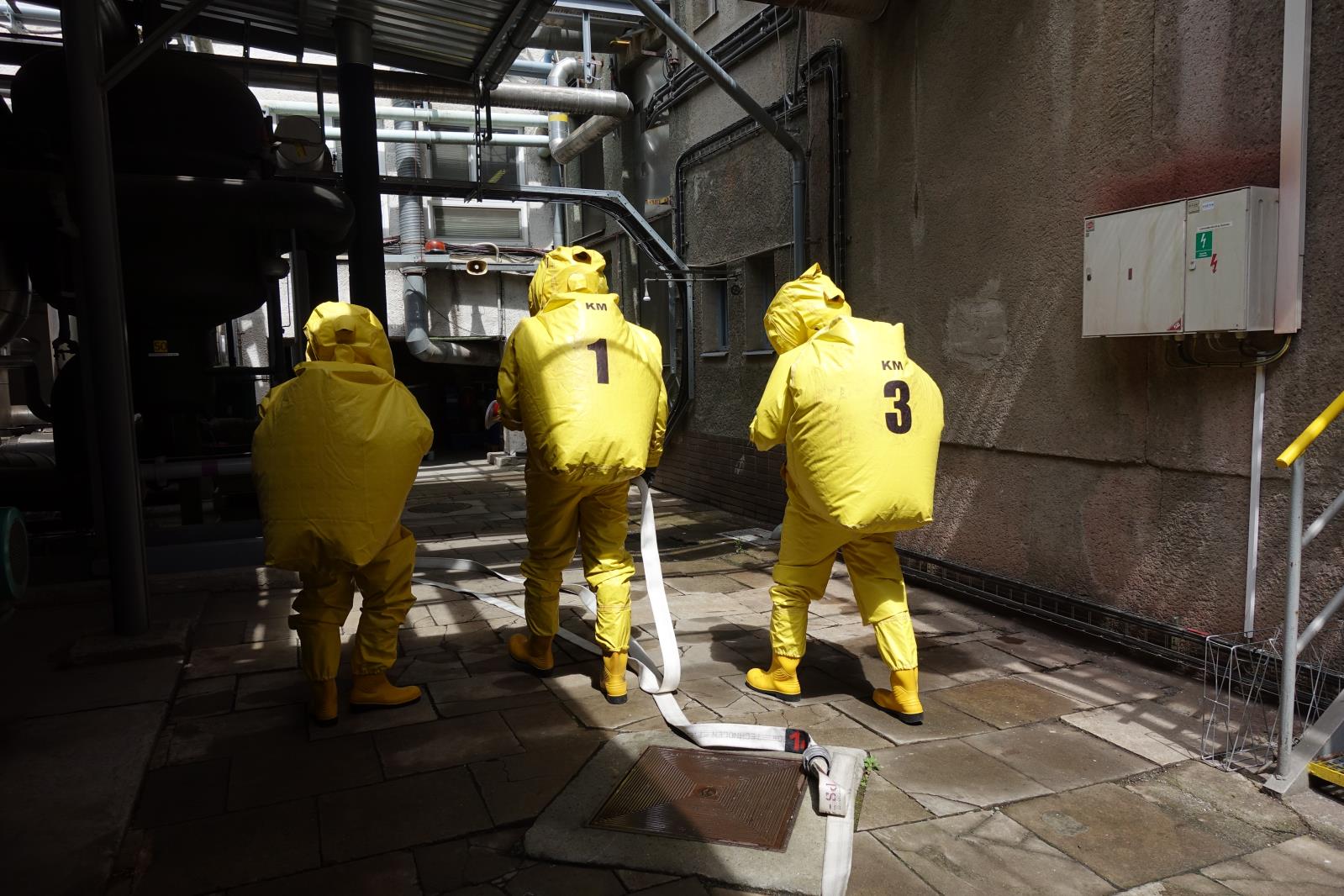 Ve firmě byl simulován únik amoniaku z ventilu nad výparníkem, na kterém došlo k závadě na těsnění. V ten okamžik byl v prostoru firmy vyhlášen poplach. Všichni zaměstnanci tak sami cvičili i reálnou evakuaci na stanovené shromaždiště, která by v takové situaci byla nevyhnutelná. Přes tísňovou linku 150 byli na pomoc přivoláni hasiči.