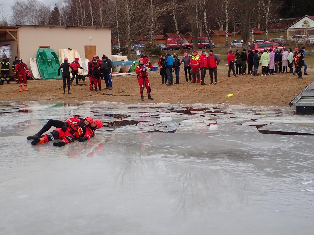 Po teoretické části následovala praktická část, která se odehrála na Lipně v Dolní Vltavici. V rámci výcviku byla vyhlášena neoficiální soutěž o nejlepší ukázku záchrany ze zamrzlé vodní plochy.