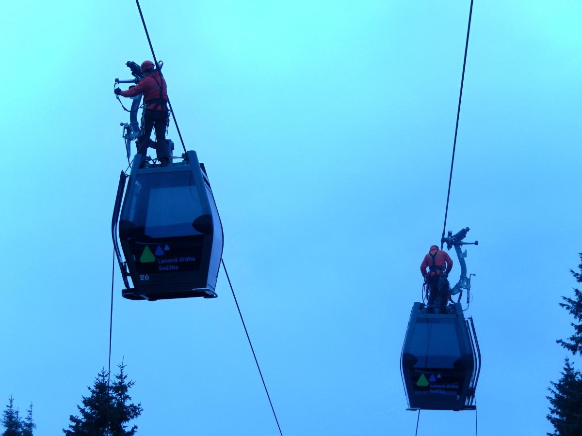 „Výcvik hasičů-lezců proběhl ve spolupráci s vedením a zaměstnanci Lanové dráhy Sněžka, kteří nám vyšli maximálně vstříc. I přes nepřízeň počasí a drobný déšť si všichni lezci zopakovali základní postupy evakuace osob z kabinek lanové dráhy,“ řekl instruktor práce ve výškách z územního odboru Trutnov Dušan Dudešek. Hasiči se také seznámili s možnými riziky, která hrozí v případě námrazy a prudkého větru. Vyzkoušeli si i automatické spouštěcí zařízení, jímž jsou vybaveny evakuační sady pro zaměstnance lanové dráhy.