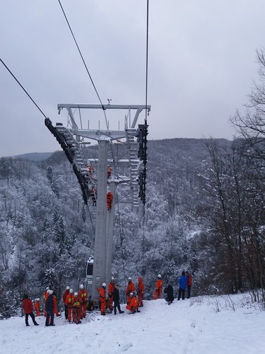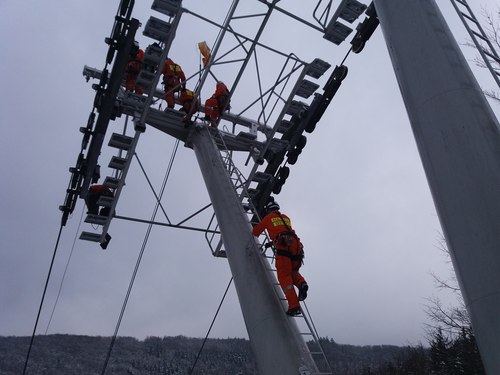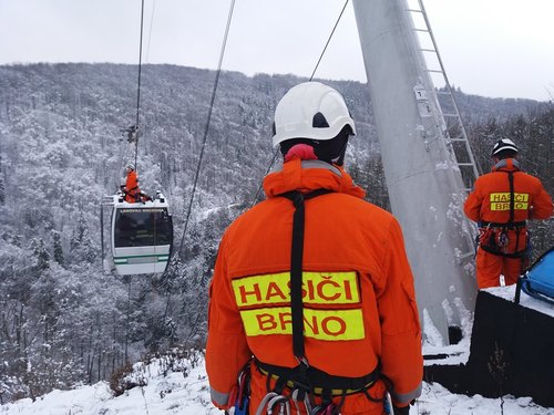 Na lanové dráze u propasti Macocha v pondělí 4.prosince 2017 dopoledne nacvičovali jihomoravští  hasiči záchranu osob ze zaseknuté kabiny. Podobné výcviky probíhají ve spolupráci s provozovatelem lanovky na Macoše každoročně.