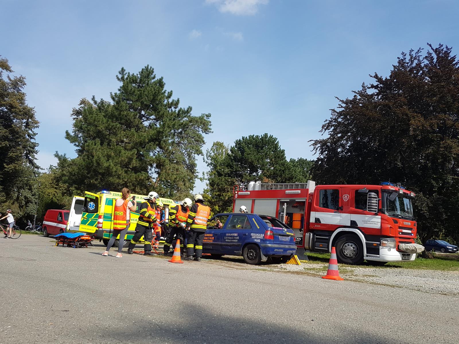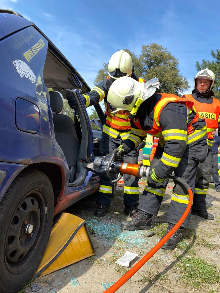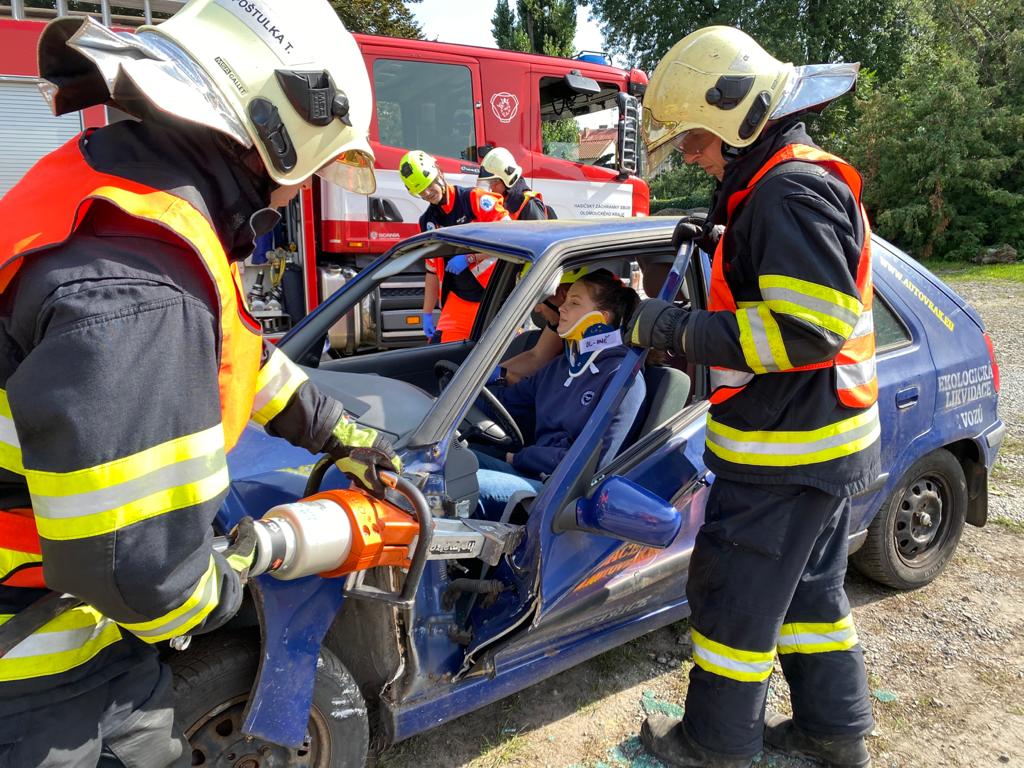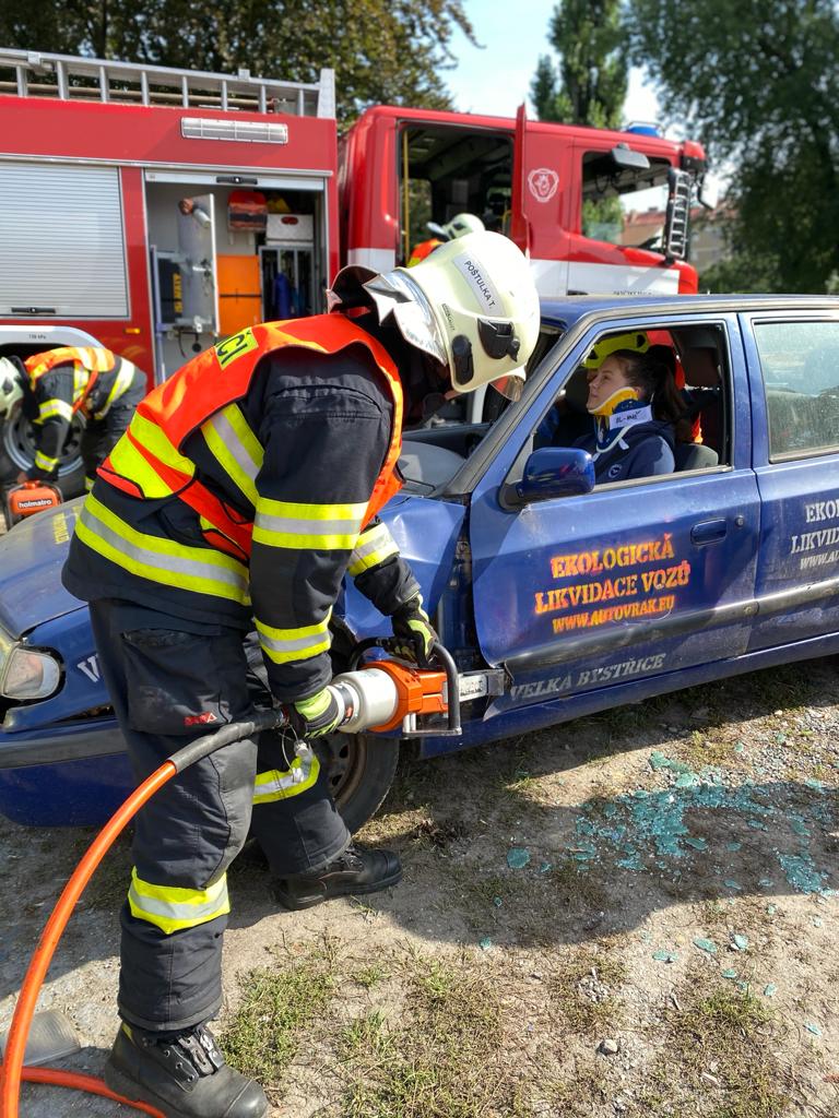 OBRAZEM: Hasiči dětem předvedli, jak se vyprošťuje u dopravní nehody