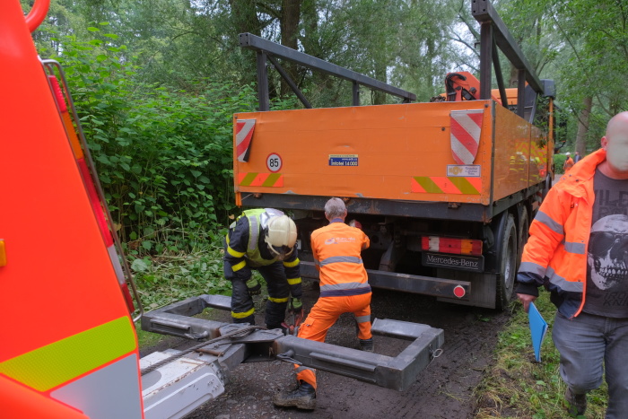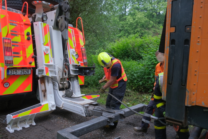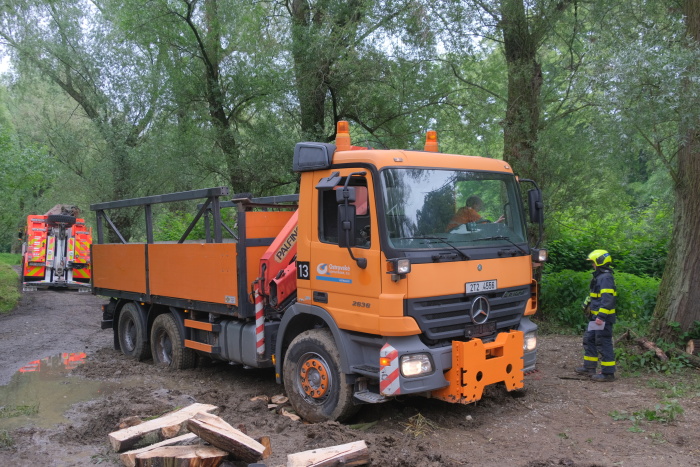 Dvě jednotky profesionálních hasičů (HZS MSK) se zde zapojily do vyproštění nákladního automobilu MB Actros, který se mezi...