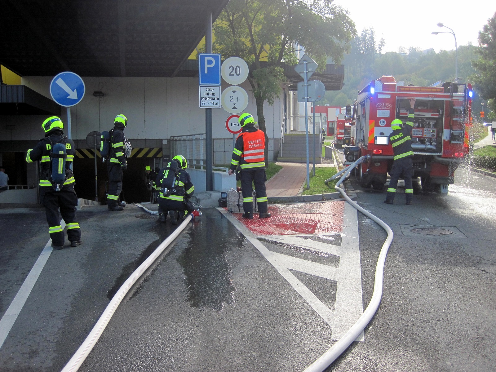 Dvě cisterny hasičů ze stanice Vsetín vyjely dnes, 11.9. 2017  v 8:49 hodin k hlášenému požáru osobního automobilu v podzemní garáži obchodního centra ve Vsetíně na ulici Generála Klapálka. Podle oznamovatele se jedna osoba nacházela uvnitř zakouřeného podzemního prostoru.