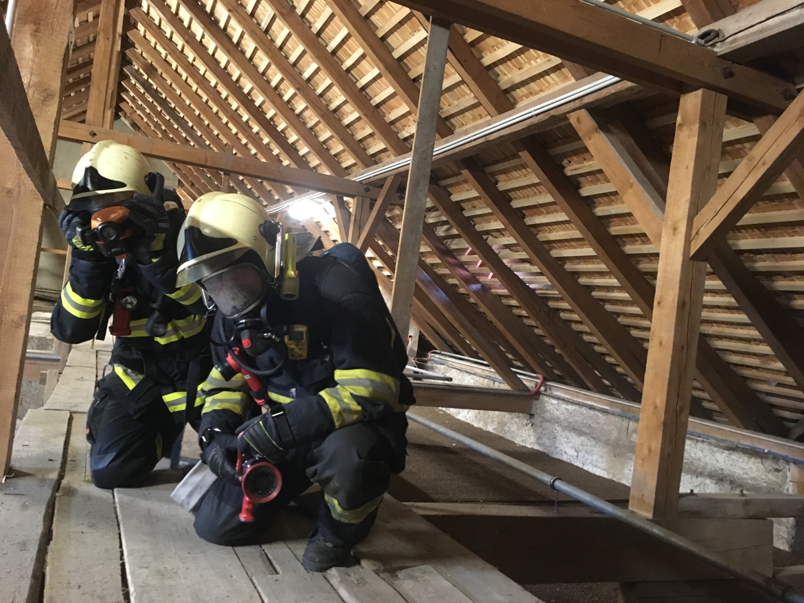 Požár byl simulován v prostoru půdy. Cílem cvičení bylo prověření funkčnosti elektronické požární signalizace, orientace jednotek v areálu památky a kontrola zdrojů hasební vody v místě samotném. Těsně před polednem bylo cvičení ukončeno a po jeho vyhodnocení se obě jednotky vrátily na své základny.