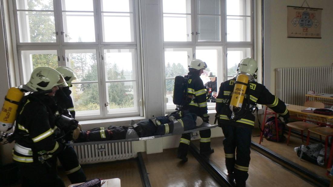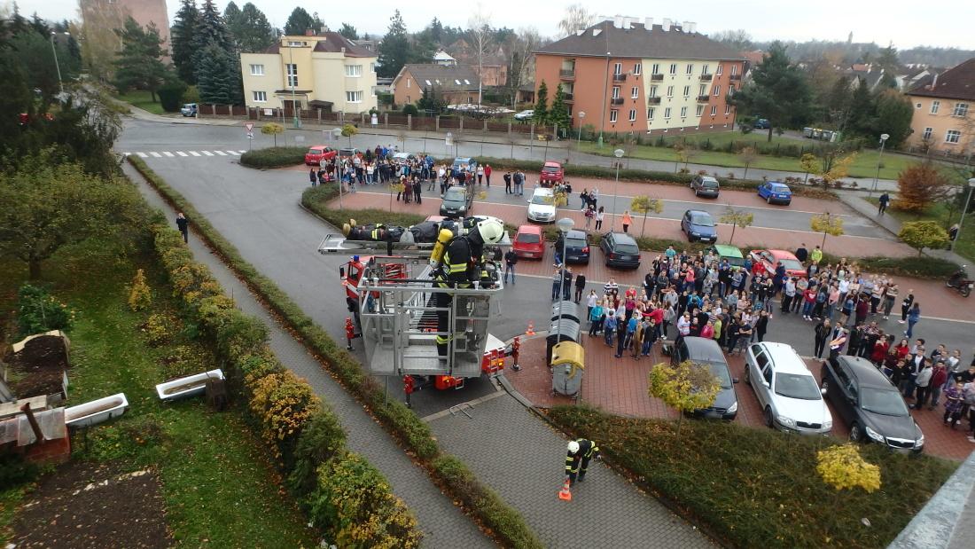 Chemická učebna byla v plamenech. Takový byl námět taktického cviční na Gymnáziu Jaroslava Žáka v Jaroměři.
