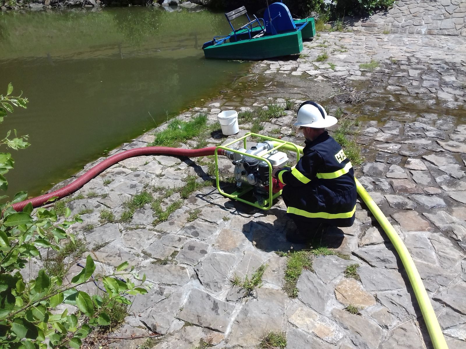 K zajištění dostatečného množství vody pro hašení zřídily zasahující jednotky také čerpací stanoviště u blízkého rybníku. V 13:27 hodin byl fiktivní požár zlikvidován.