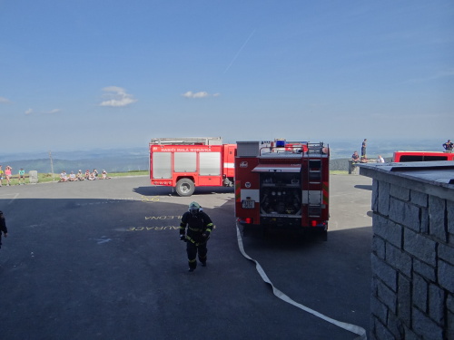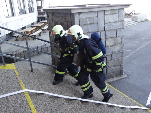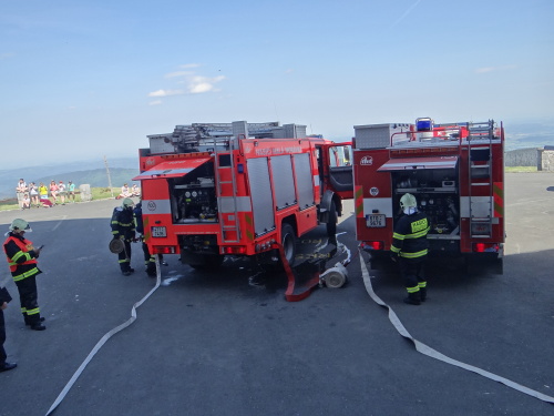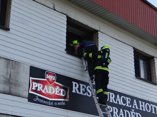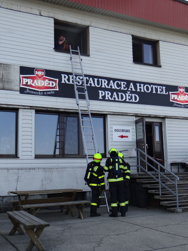 Šest jednotek hasičů se zapojilo v pondělí 29.5.2017 odpoledne do prověřovacího cvičení na nejvyšší hoře Jeseníků Pradědu. Hořelo zde v ubytovací části pod televizním vysílačem. Hasiči museli ze dvou pokojů zachránit celkem pět osob, a to i po žebříku a v náručí. Také si vyzkoušeli čerpání požární vody z velkých zásobníků vedle objektu.