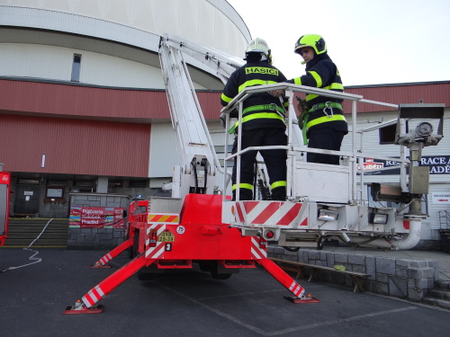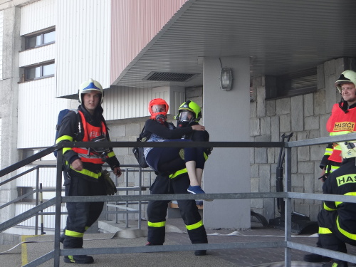 Po prověřovacím cvičení (dopředu o něm věděli jen organizátoři), do něhož byl zapojen i personál objektu vysílače, si hasiči prohlédli technologické zázemí vysílače a další dispozice objektu.