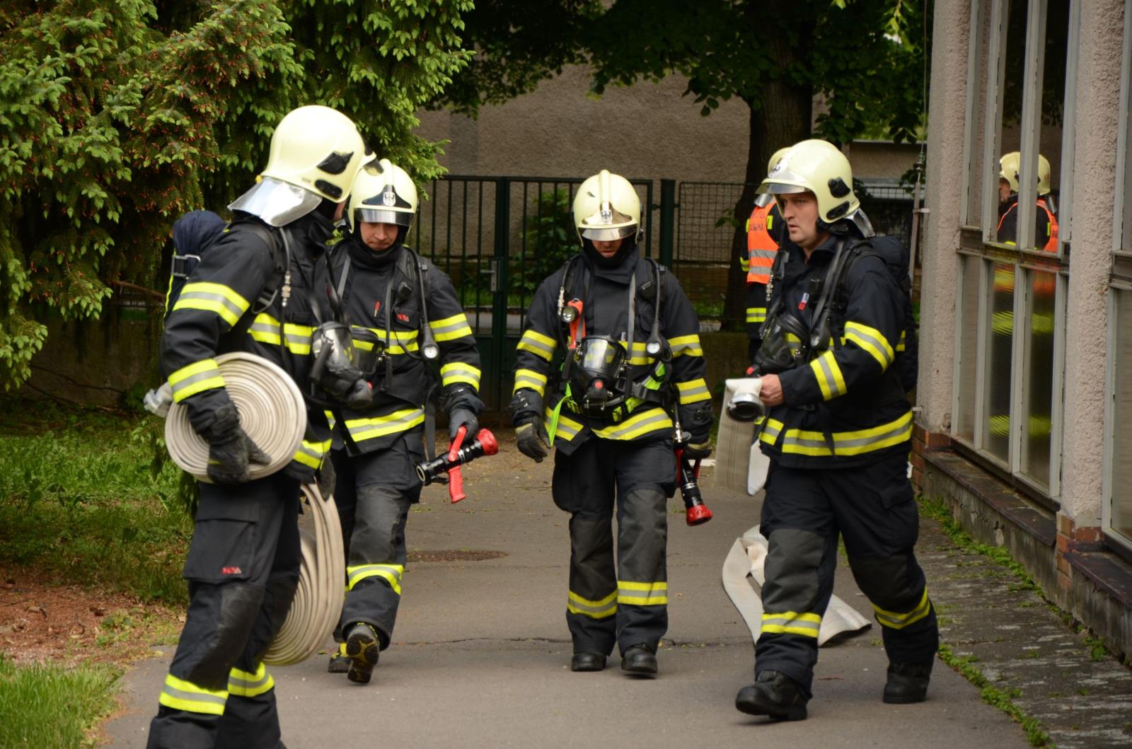 Při příjezdu hasičů byly děti již mimo nebezpečí, venku na dvoře školky, ale uvnitř zůstaly kvůli zakouření objektu uvězněny čtyři děti a paní učitelka. Hasiči začali vyhledávání osob v dýchacích přístrojích. Po několika minutách byly uvězněné osoby nalezeny. Dětem byly nasazeny vyváděcí masky, zajištěn jim byl tepelný komfort a postupně byly vyvedeny mimo nebezpečí. Paní učitelka byla vynesena z budovy na nosítkách
