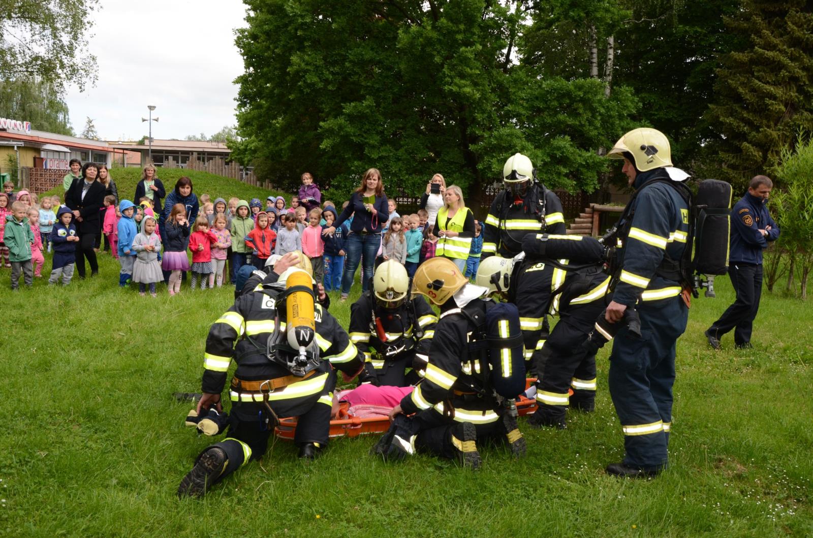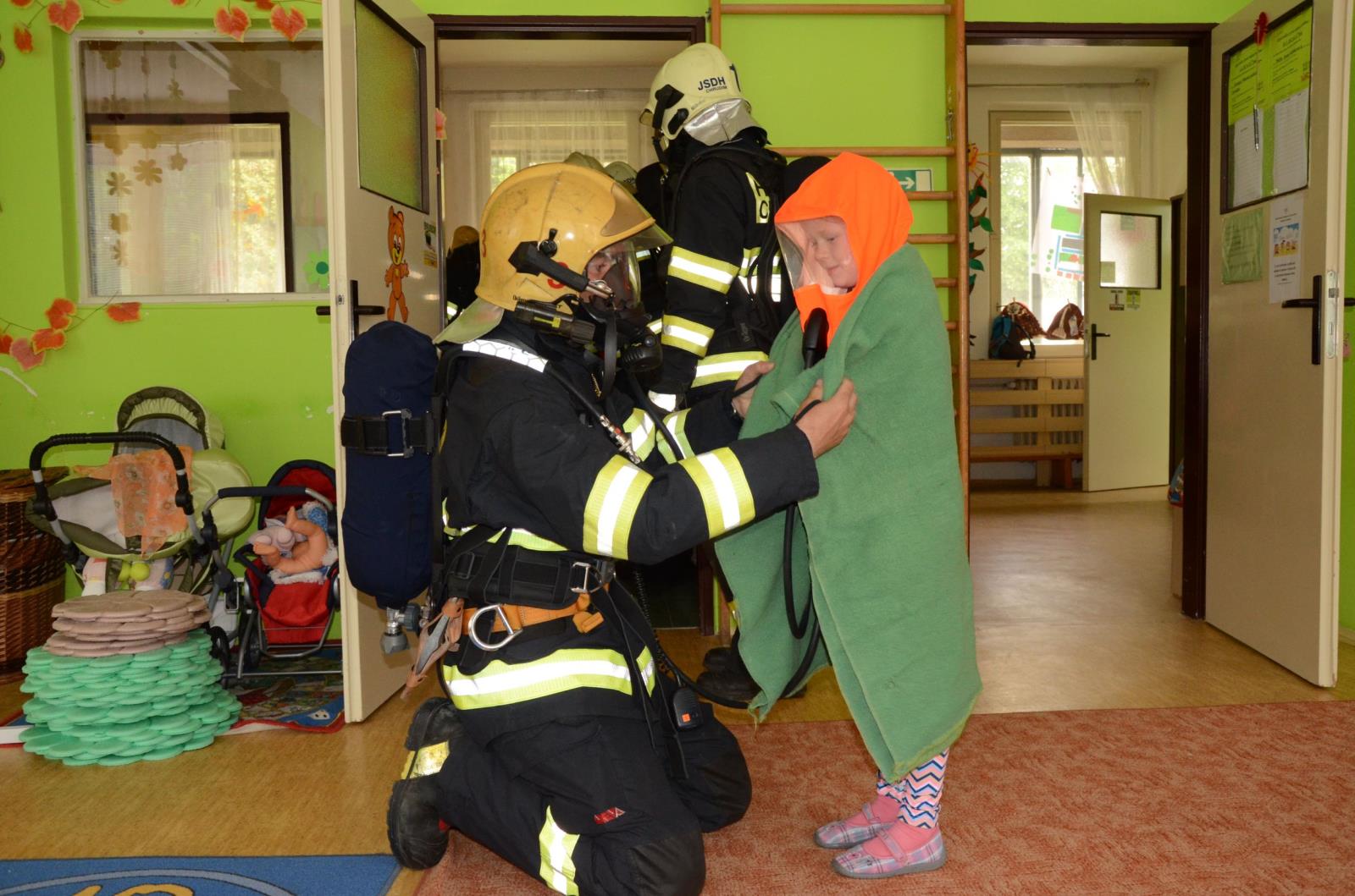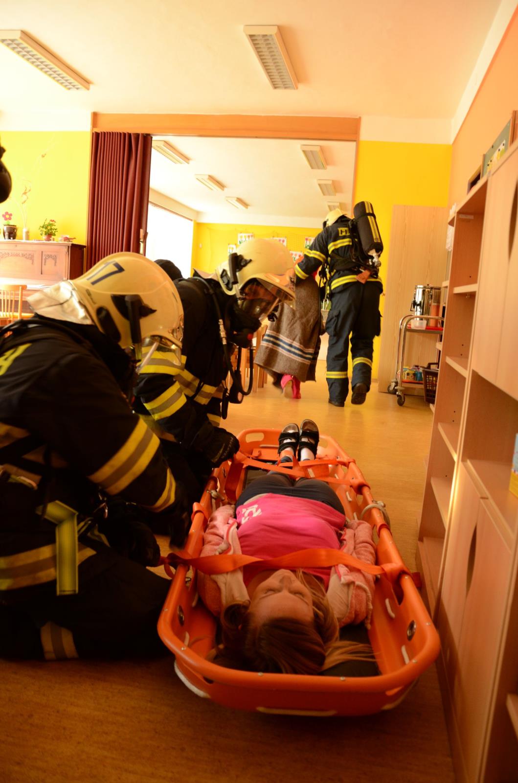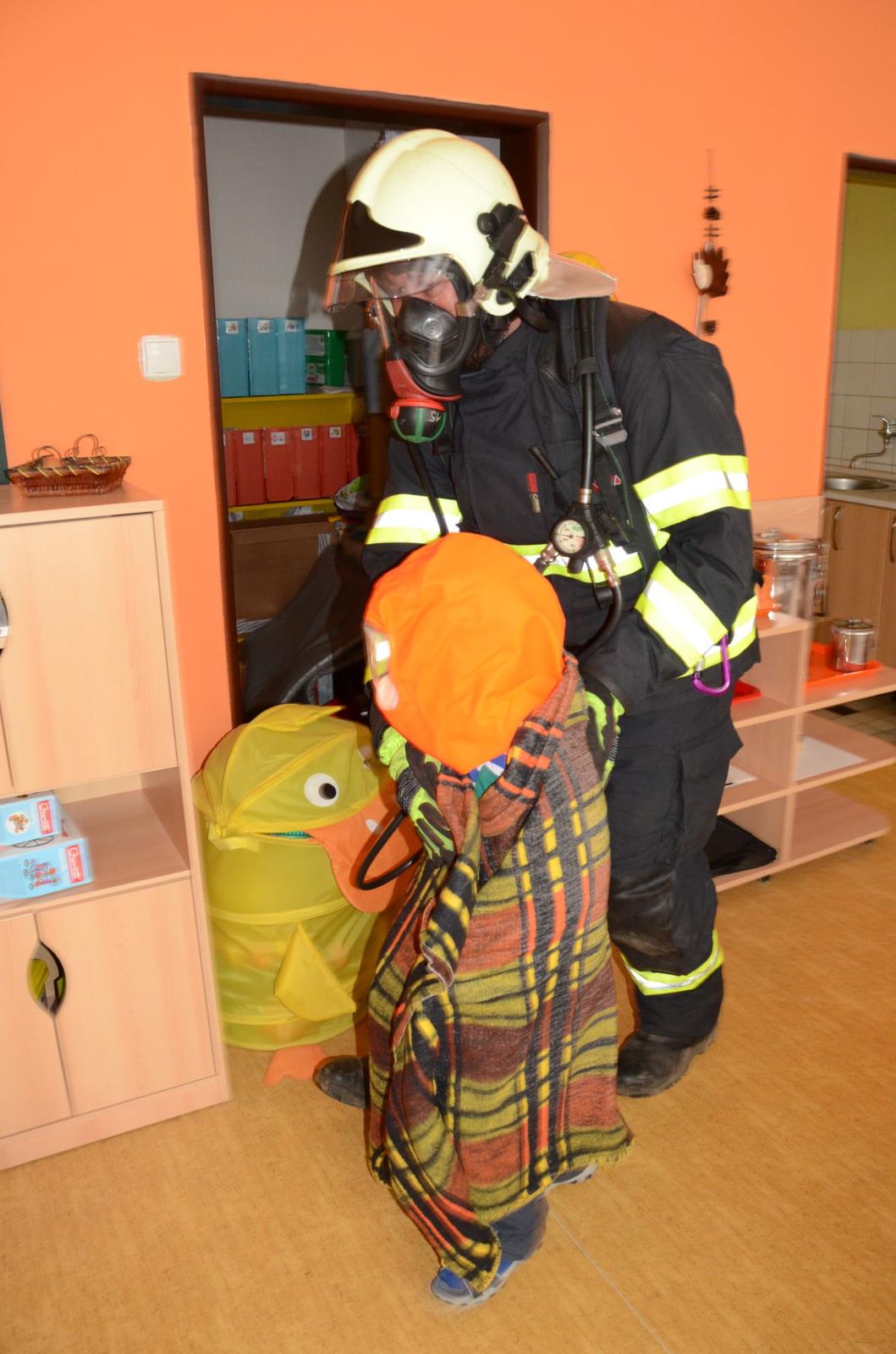 „Bývá obtížné dětem vyváděcí masku nasadit. Pro děti je to stresová situace, nikdy podobnou masku na hlavě neměly. Hasiči proto přistoupí k dítěti a zcela v klidu jim vysvětlí, k čemu maska slouží, a vše jim názorně předvedou,“ přibližuje úskalí takových zásahů jeden z velitelů zásahu nprap. Milan Hodek. Podobná cvičení se v mateřských školách odehrávají častěji, a poté se děti na mimořádné události připravují při pravidelných návštěvách hasičů-preventistů, kteří při besedách dětem vysvětlují, jak se chovat v případě požáru.