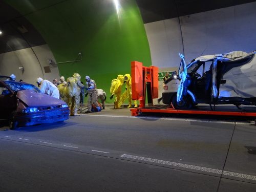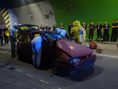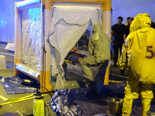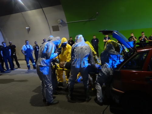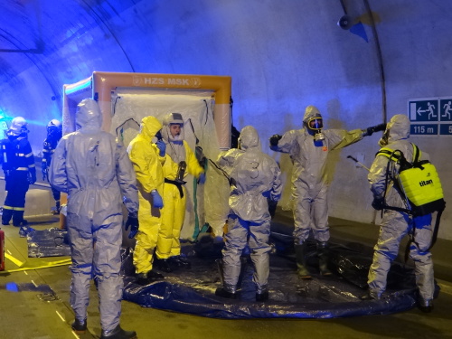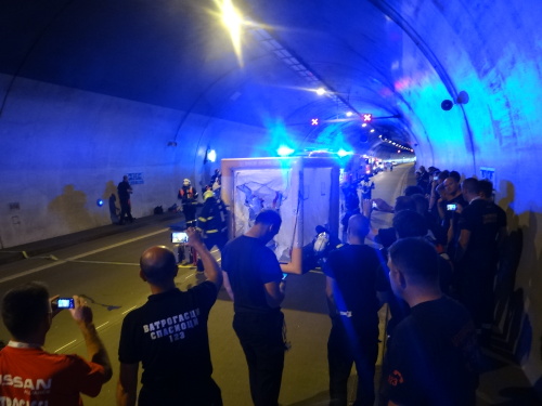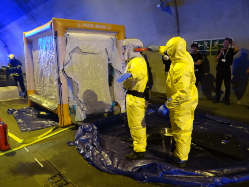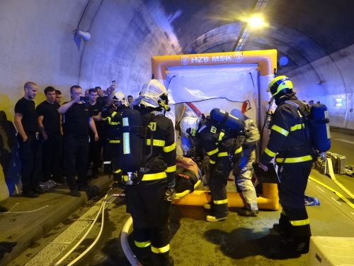Všech 21 profesionálních hasičů ze Slovinska a Černé Hory, kteří tento týden v Ostravě a okolí cvičí s českými hasiči vyprošťování zraněných osob z havarovaných vozidel v rámci projektu Evropské unie Direct, se ve středu 21.6.2017 dopoledne stalo pozorovateli simulované nehody dvou osobních vozidel v dálničním tunelu D1 v Klimkovicích (okres Ostrava-město), když havarovaná sanitka převážela v bioboxu pacienta s vysoce nakažlivou nemocí.