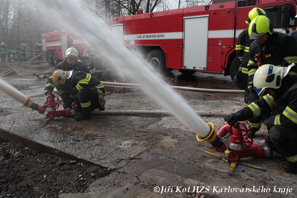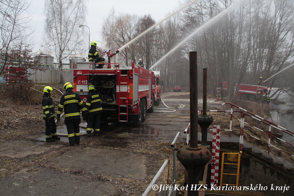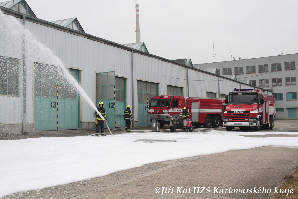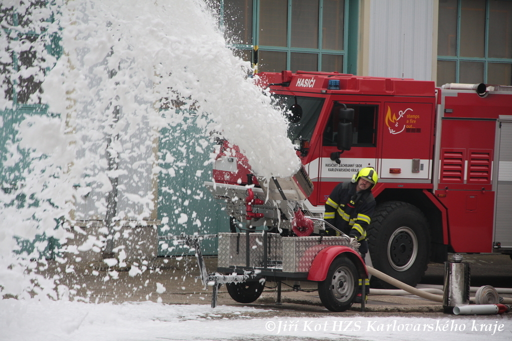 V areálu chemických závodů Sokolov probíhá od 27.3. 2018 třídenní výcvik hasičů na téma velkoobjemové hašení včetně použití pěny.
