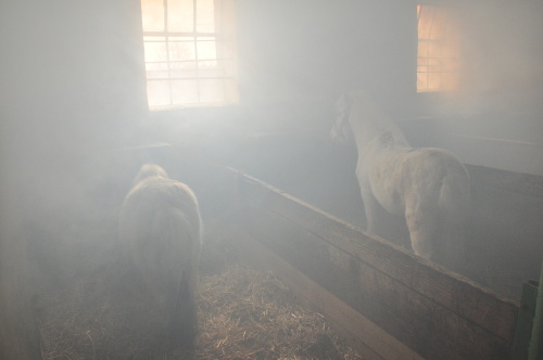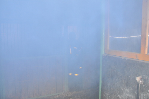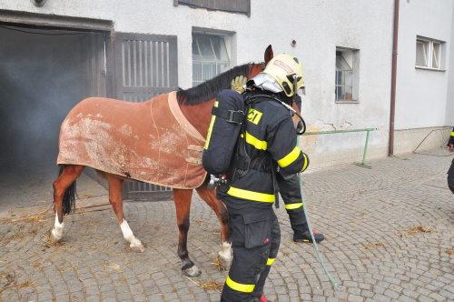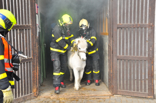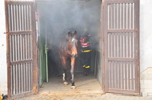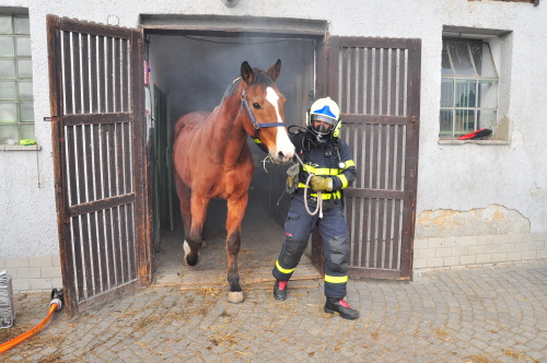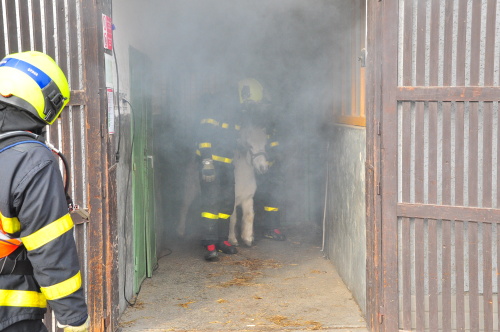 Hasiči při průzkumu v dýchacích přístrojích objevili uvnitř stájí „pouze“ živá zvířata, naštěstí žádného zraněného chovatele. Krásné koně a poníky co nejrychleji vyvedli z hustého kouře, když je uklidňovali, a předávali je zaměstnancům jezdeckého klubu. Požár uhasili jedním vodním proudem C. Budovu hasiči vyvětrali přirozeným způsobem a přetlakovým ventilátorem.