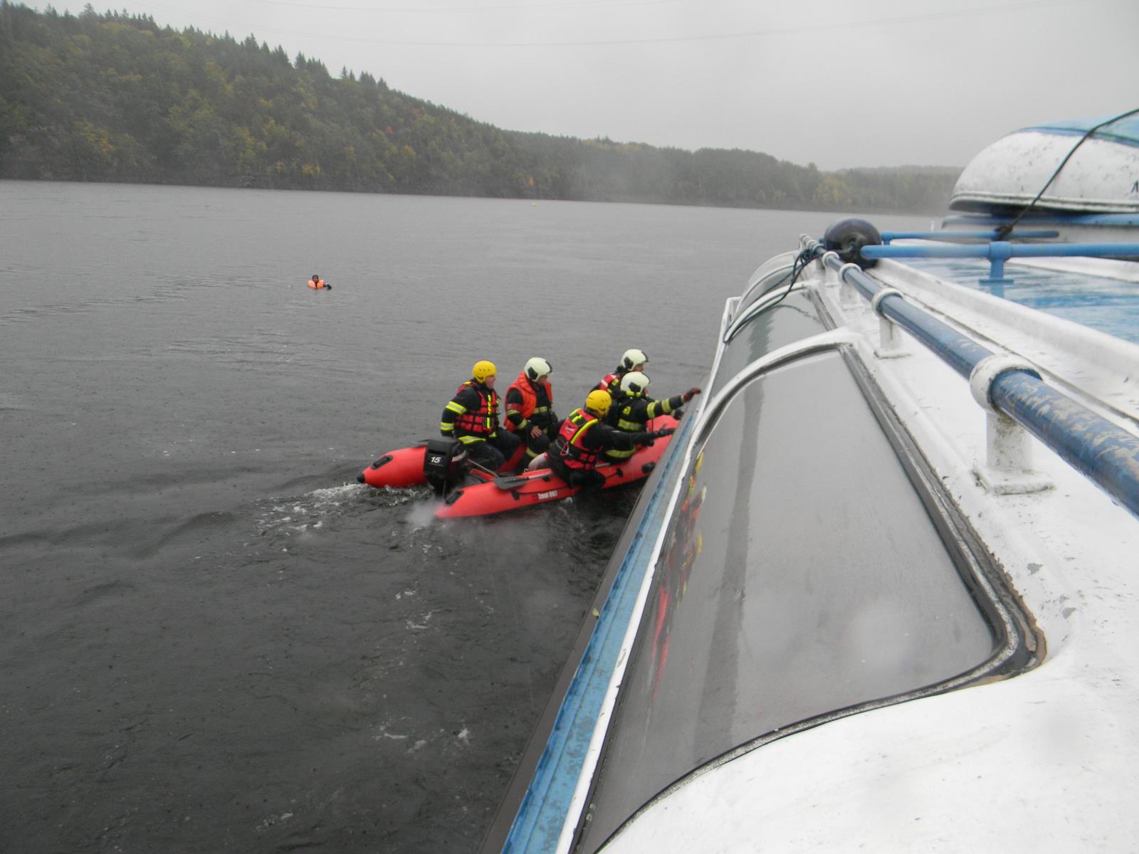 Podle plánu cvičení začalo hořet v lodním baru po zkratu na rychlovarné konvici. Požár se pak rychle šířil na dřevěné obložení baru. Posádka lodě se pokusila požár uhasit, ale bez úspěchu. Proto byli přes tísňovou linku 112 povoláni hasiči a vzhledem k tomu, že tři osoby se nadýchaly zplodin hoření, dvě zůstaly v bezvědomí a jedna se popálila, tak také ZZS a samozřejmě Policie ČR.