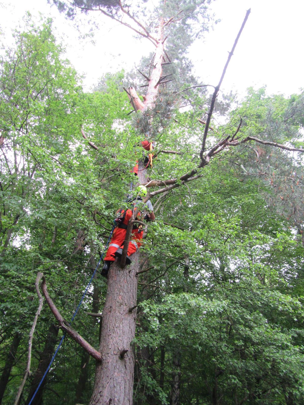 Třetím bodem přípravy byla práce v koruně stromu spojená se záchranou uvízlé osoby.