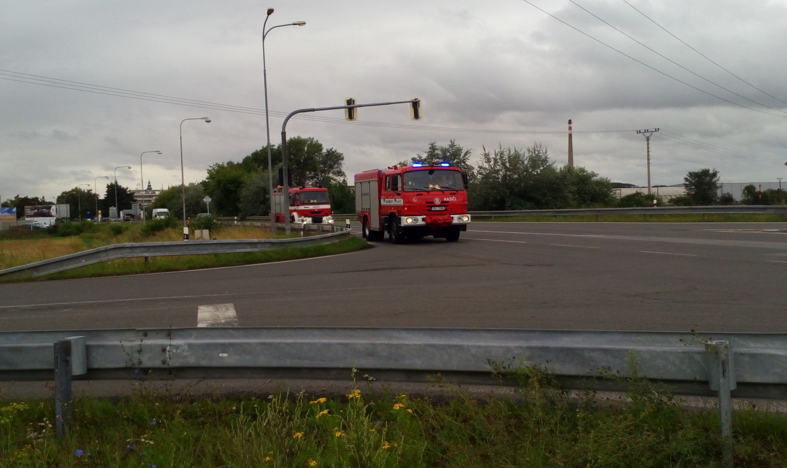 V 10:03 hodin, necelých pět minut po vyhlášení poplachu, dorazily na místo „zásahu“ posádky dvou cisternových automobilů, které v dalších minutách doplnili kolegové s kontejnerovým automobilem.