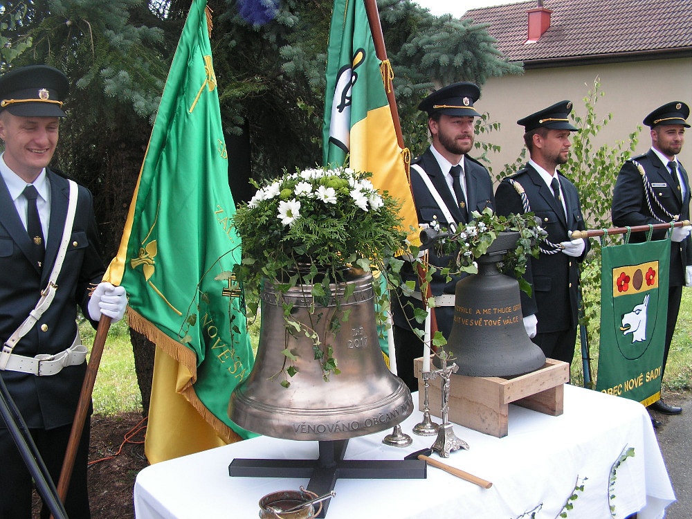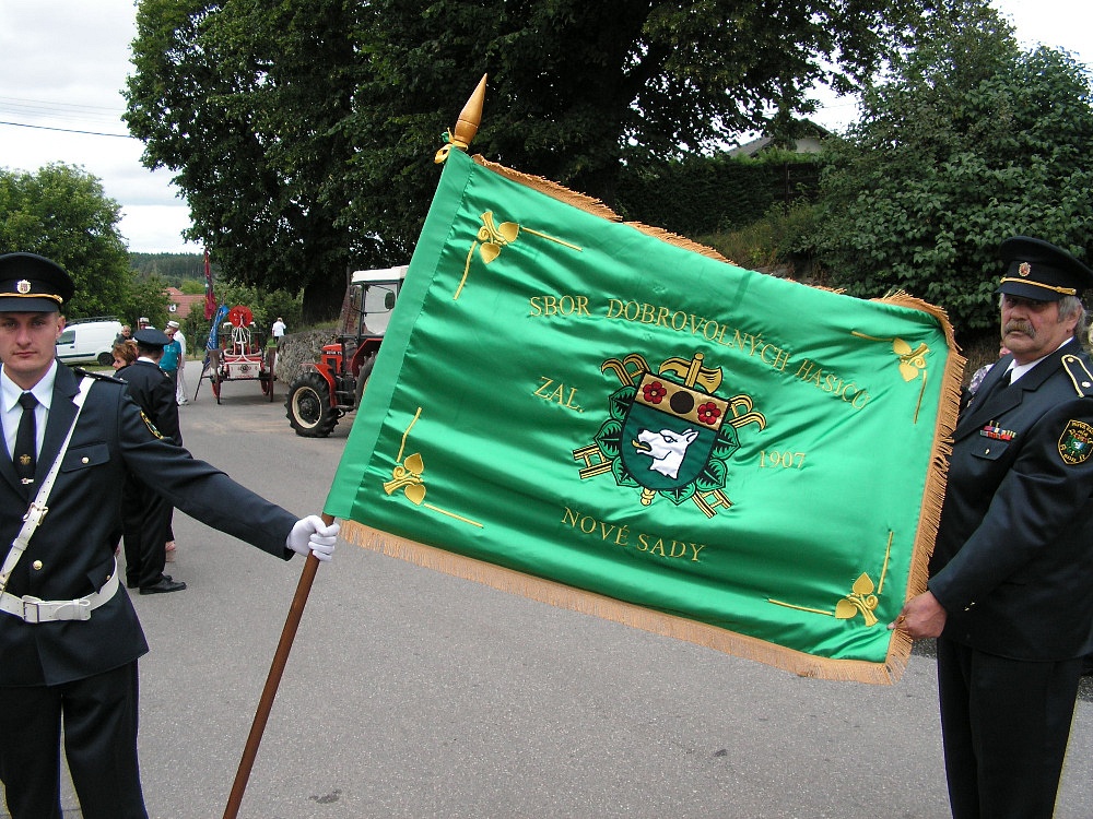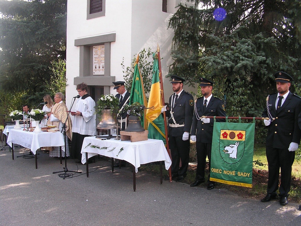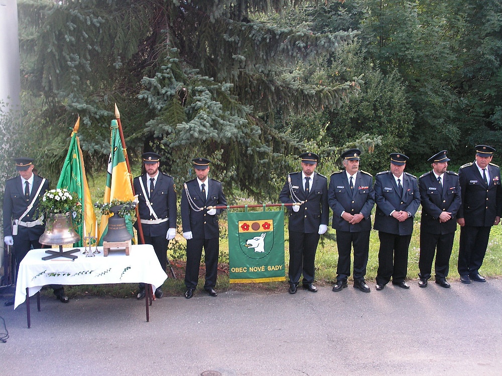 R.D. Jiří Švanda z Římskokatolické farnosti Ruda požehnal po homilii nový prapor SDH a na závěr mše nový zvon pořízený ze sbírky občanů. Na zeleném podkladu praporu je vyšit název sboru s datem založení. Ve středu praporu je znak obce Nové Sady, který je vsazen do lipových lístků se zkříženými hasičskými žebříky a proťatý hasičskou sekyrkou, rok založení sboru 1907. V rozích jsou vyšity lipové ratolesti jako národní symbol. Na zlatém podkladu je vyšit patron hasičů svatý Florián a heslo „Bohu ke cti, bližnímu ku pomoci“.