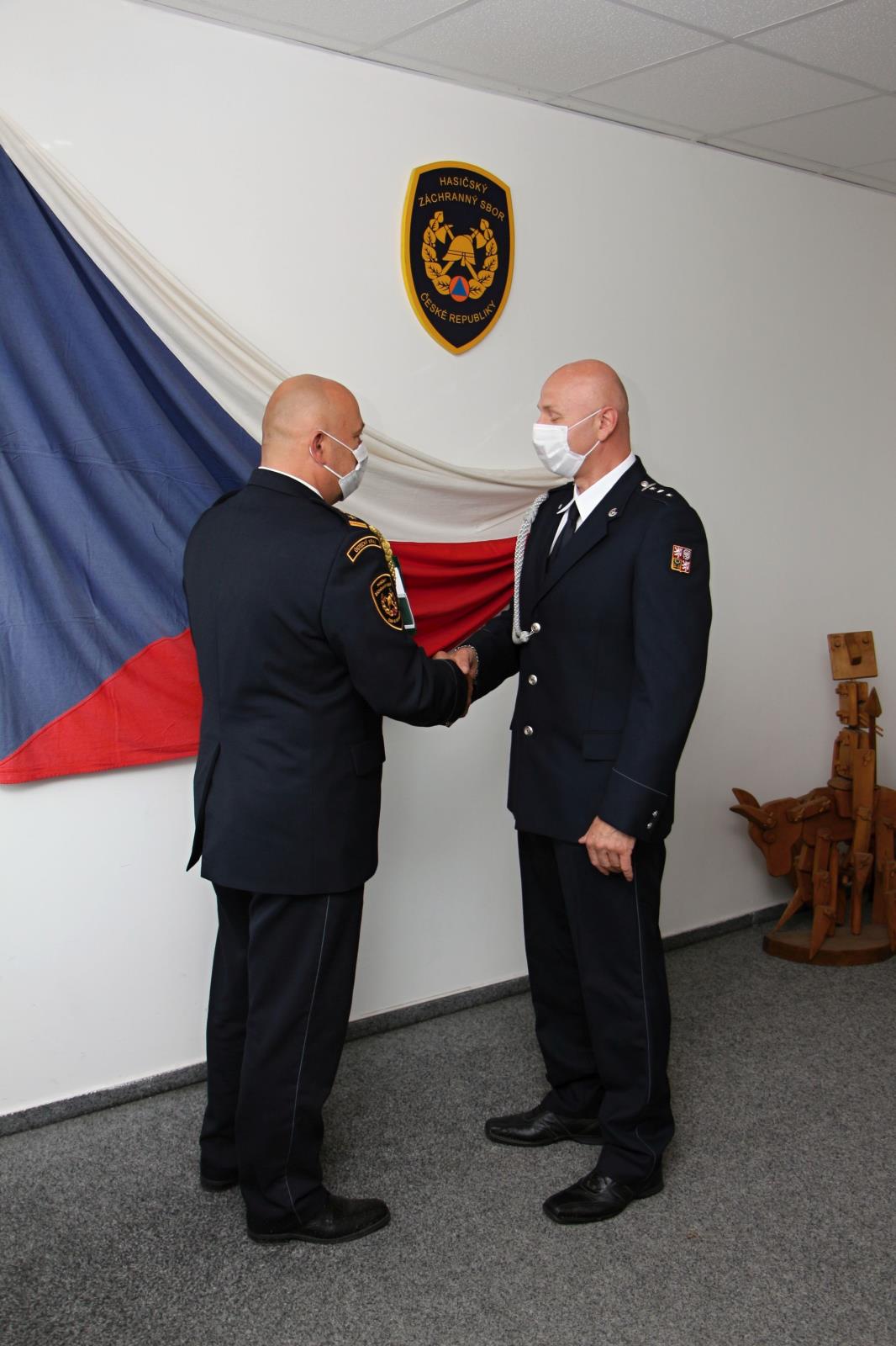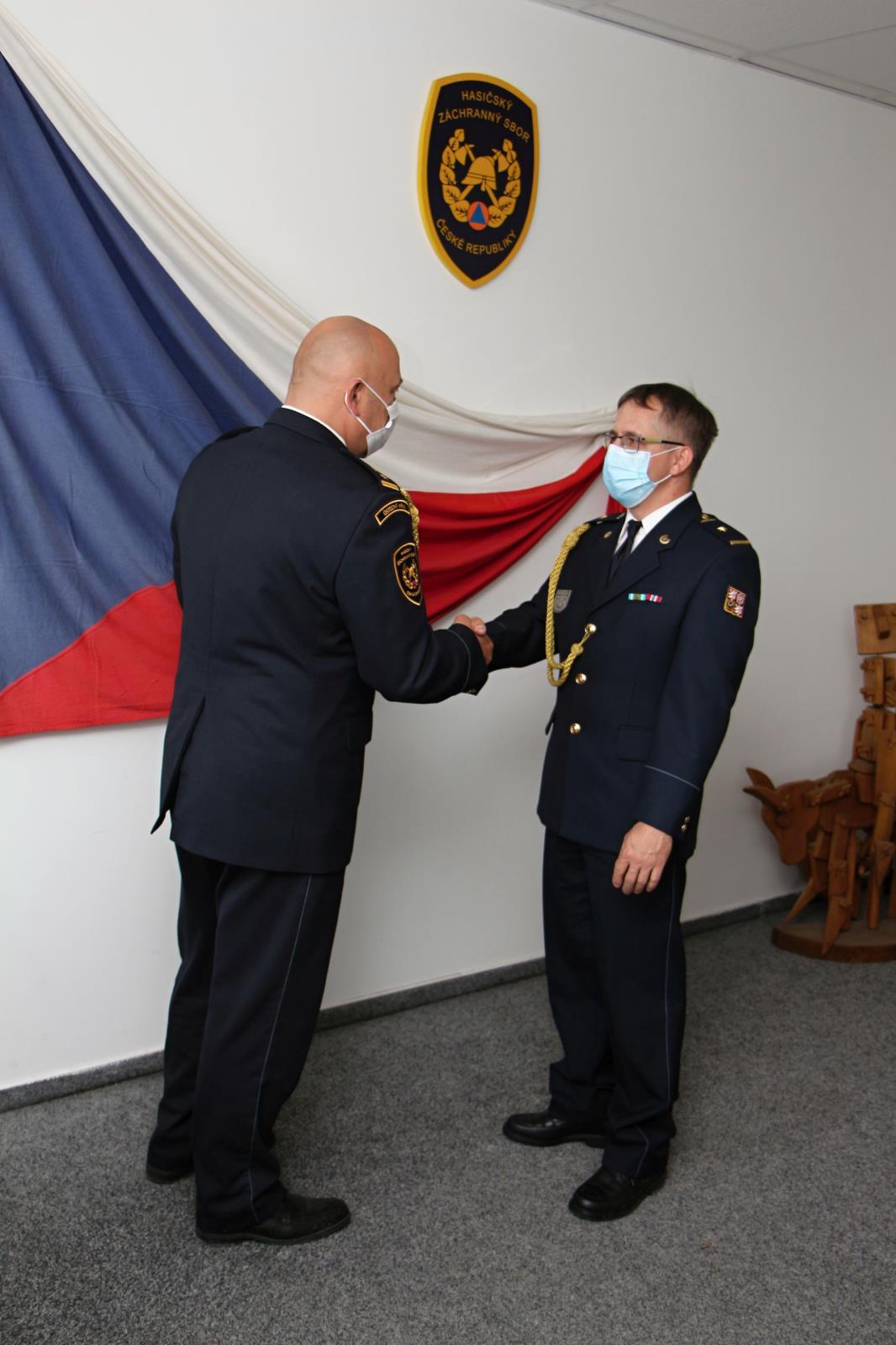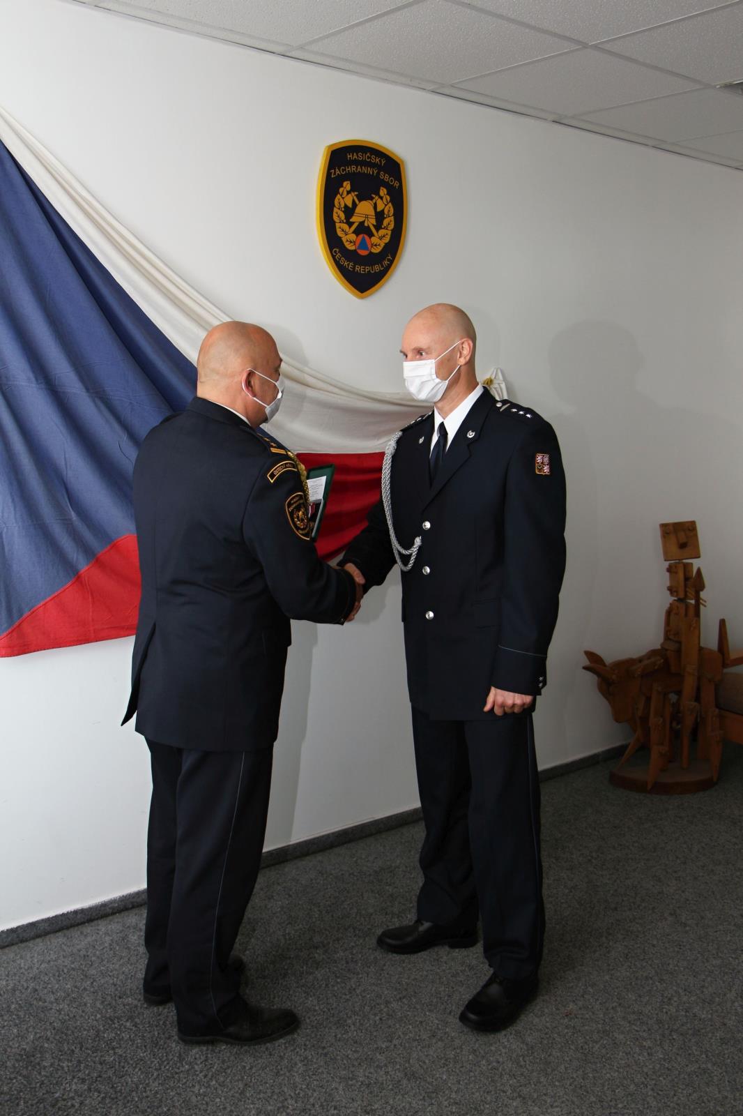 Medaili Za věrnost II. stupně převzal od ředitele HZS Ústeckého kraje plk. Ing. Romana Vyskočila mjr. Ing. Jan Masojídek
