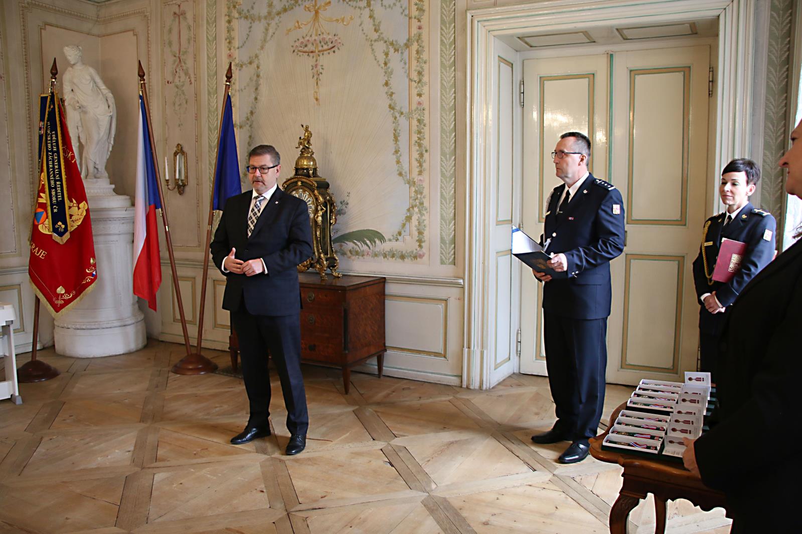 Medaile udělil generální ředitel Hasičského záchranného sboru ČR genpor. Ing. Vladimír Vlček. Předal jim je náměstek pro IZS HZS Ústeckého kraje plk. Mgr. Martin Laníček ve Velkém státního zámku Krásný dvůr. Slavnostního aktu se zúčastnil Ing. Jan Schiller – hejtman Ústeckého kraje, Mgr. Lea Jandová – starostka obce Krásný dvůr, plk. Ing. Robert Kubánek – ředitel Územního odboru Louny PČR, Jiří Henc – starosta krajského Sdružení hasičů Čech, Moravy a Slezska, pplk. Ing. Roman Bárta zástupce Krajského vojenského velitelství Ústí nad Labem a další významné osobnosti. Svým zpěvem přítomné potěšili žáci Základní umělecké školy v Podbořanech pod vedením ředitele Martina Říhovského.
