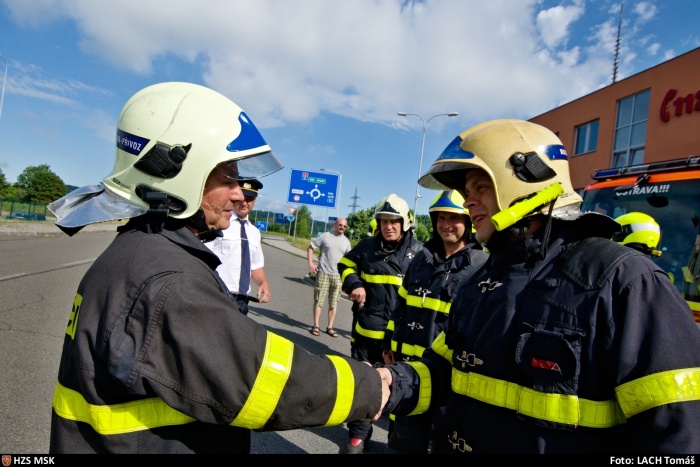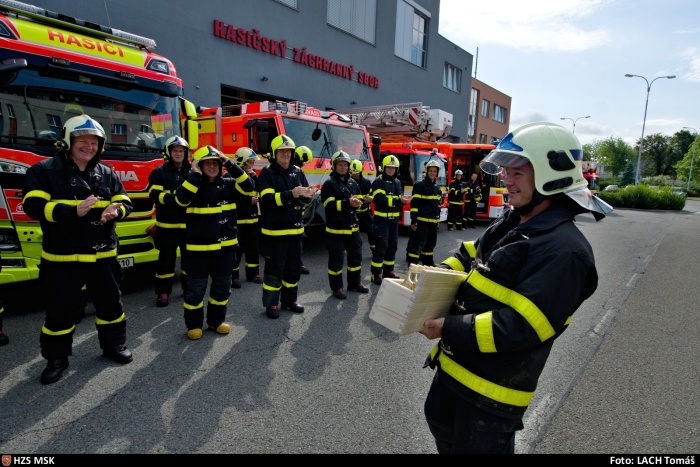 Na dvůr před přívozskou stanicí HZS MSK (nedaleko dálnice D1) se s ním přišli ve středu rozloučit jak zdejší kolegové, tak kamarádi z jiných stanic, na kterých v průběhu své kariéry sloužil, někteří přijeli i z osobního volna. Video z rozlučky: https://youtu.be/4qm3c3UtZzU