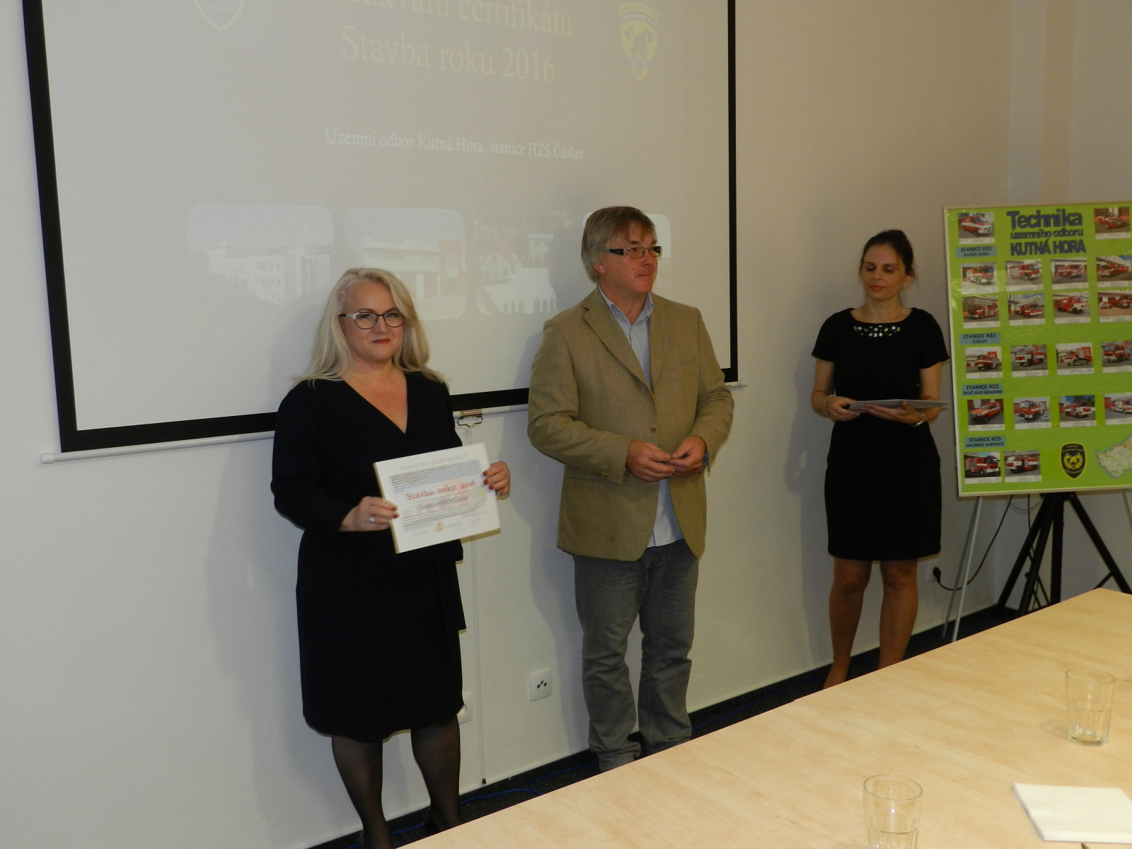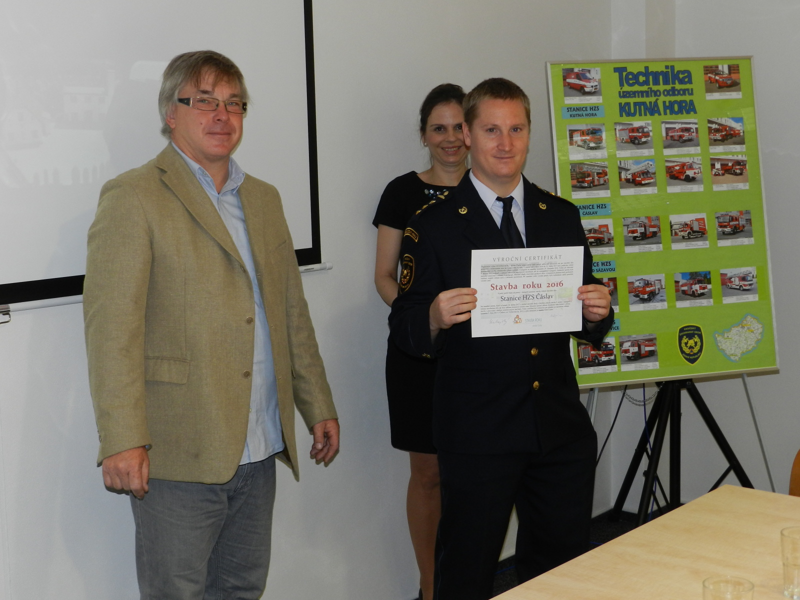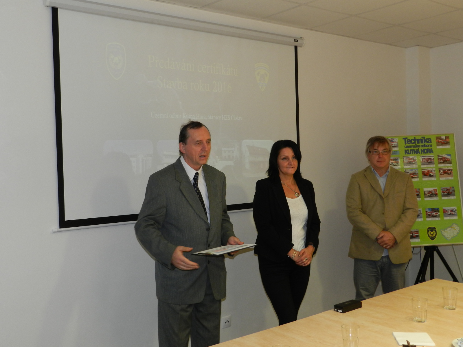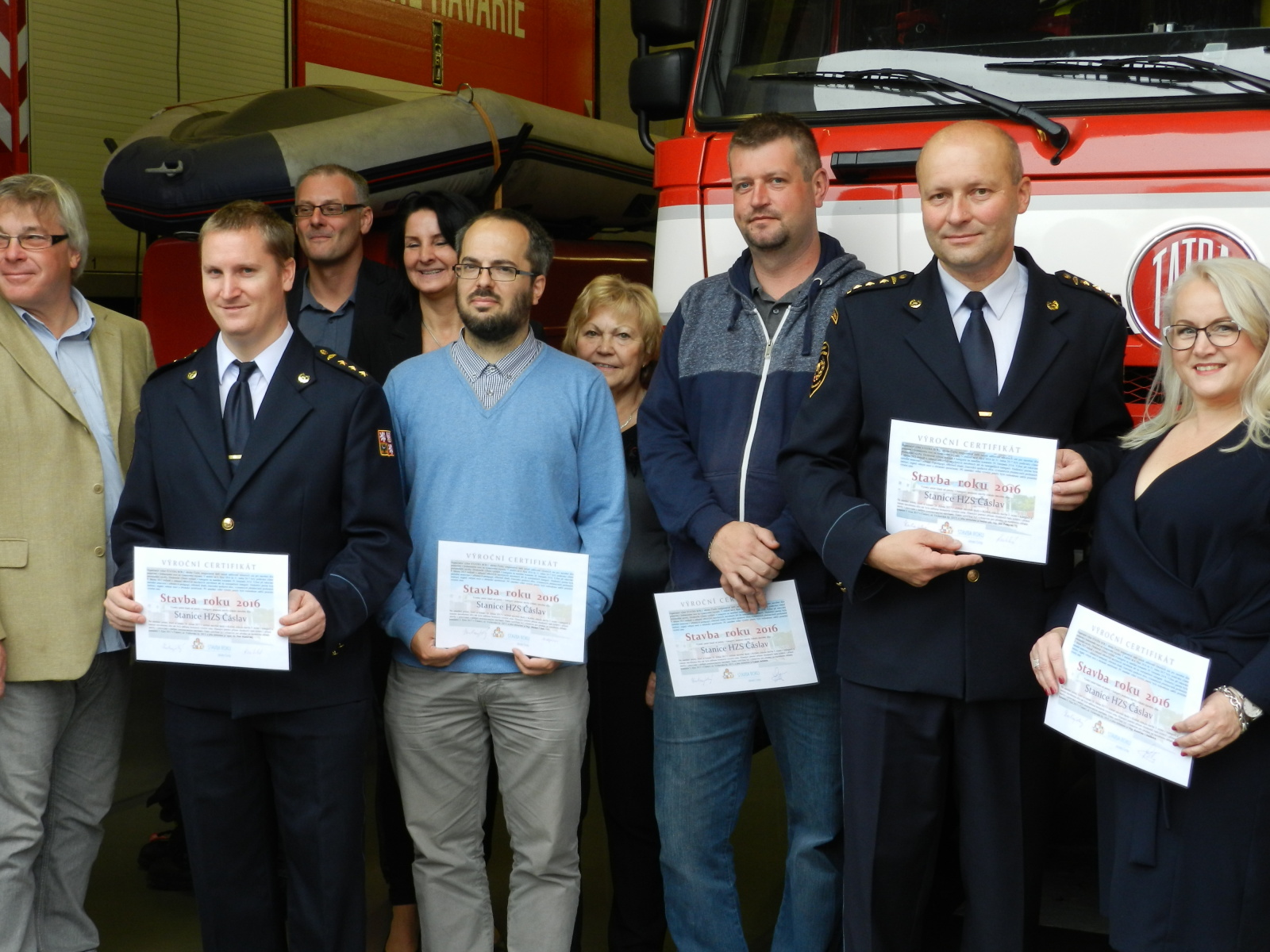Výroční certifikát osobně převzali představitelé Města Čáslavi, starosta Ing. Jaromír Strnad a tajemník městského úřadu Ing. Antonín Hejzlar, za generálního dodavatele stavby společnost Bursík Holding, a.s., pan Lukáš Jeřábek, dále zástupce projekční kanceláře a autorského dozoru společnosti Arplan s.r.o. Ing. Lukáš Semerád a také zástupci HZS Středočeského kraje, Mgr. Kateřina Cibulková (nyní HZS Karlovarského kraje), Michal Čížek, DiS., plk. Ing. Jiří Pokorný, mjr. Ing. Pavel Říha a npor. Bc. Petr Klatovský.