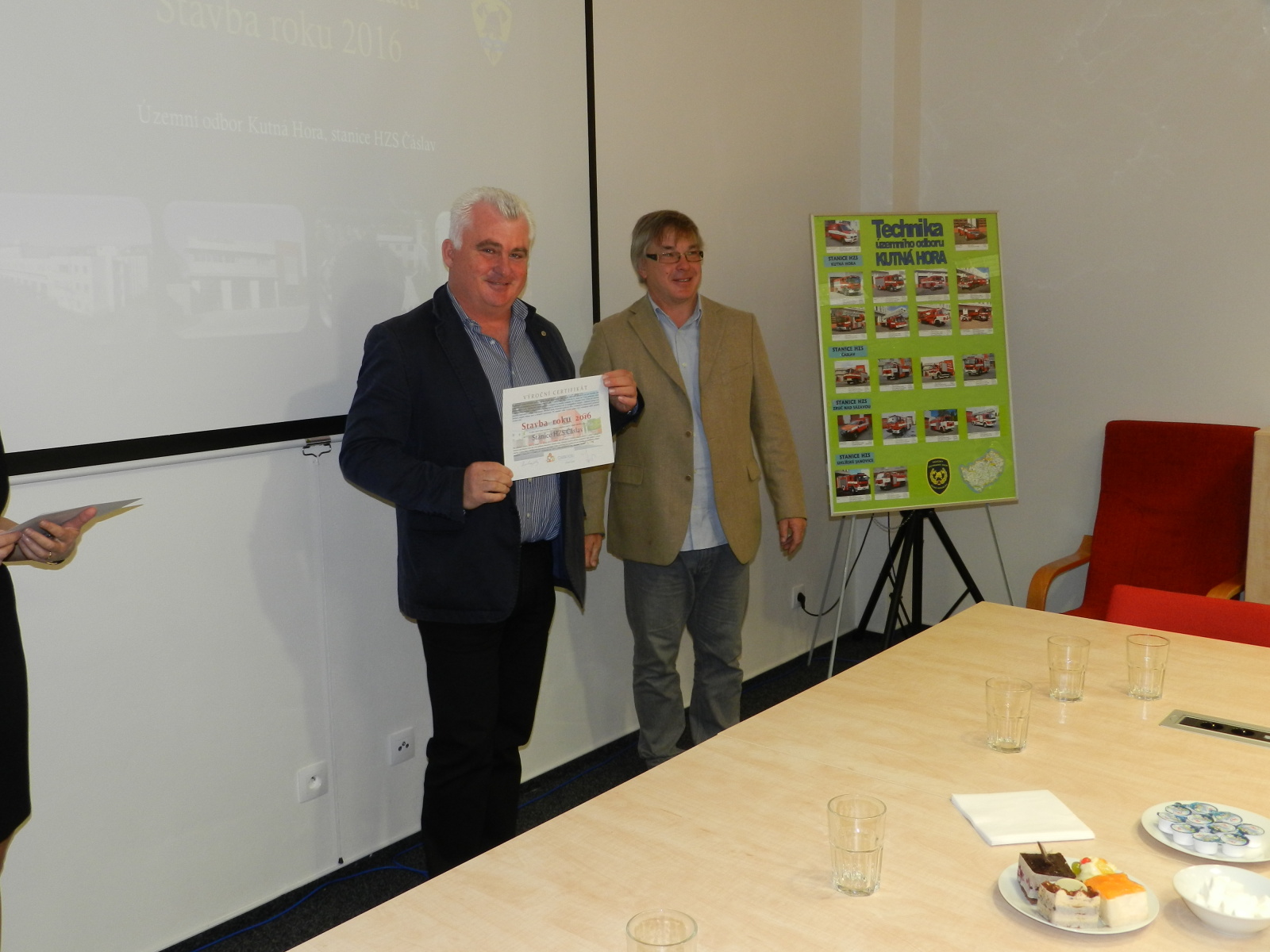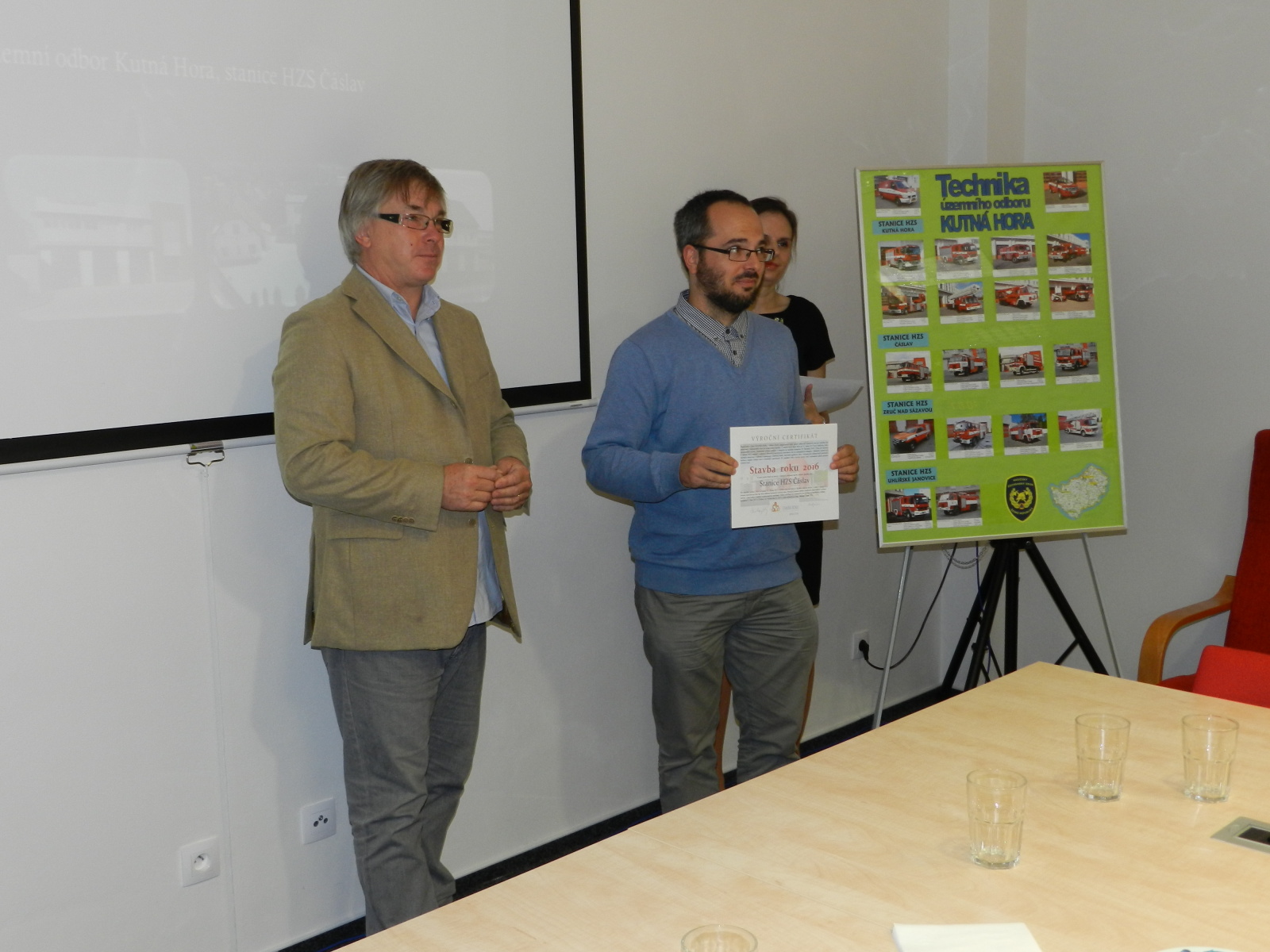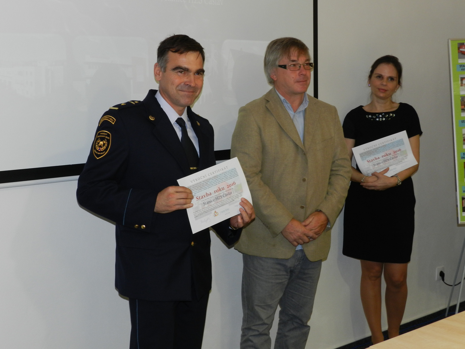 Výroční certifikát osobně převzali představitelé Města Čáslavi, starosta Ing. Jaromír Strnad a tajemník městského úřadu Ing. Antonín Hejzlar, za generálního dodavatele stavby společnost Bursík Holding, a.s., pan Lukáš Jeřábek, dále zástupce projekční kanceláře a autorského dozoru společnosti Arplan s.r.o. Ing. Lukáš Semerád a také zástupci HZS Středočeského kraje, Mgr. Kateřina Cibulková (nyní HZS Karlovarského kraje), Michal Čížek, DiS., plk. Ing. Jiří Pokorný, mjr. Ing. Pavel Říha a npor. Bc. Petr Klatovský.