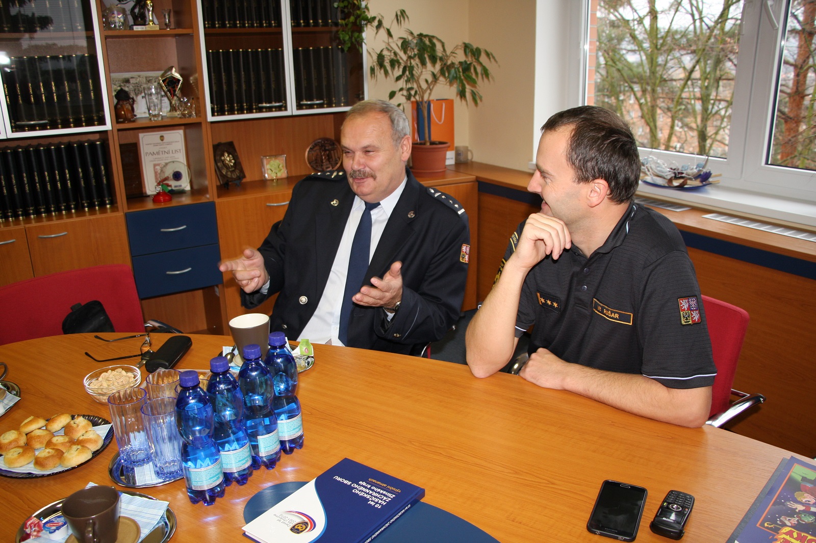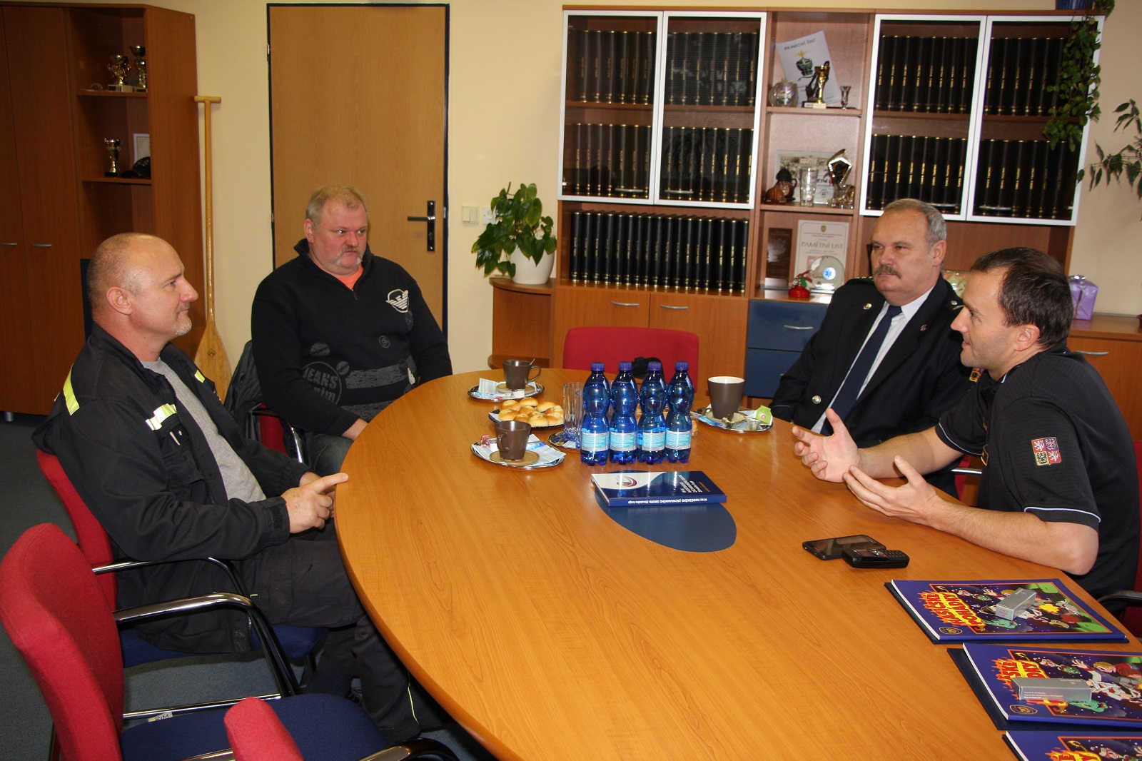 Během příjemného setkání přišla řeč na hasičské začátky, vývoj ochranných i technických prostředků, požární techniky, závažné i kuriózní zásahy. Jménem všech kolegů si dovoluji ještě jednou poděkovat Romanu Mahdalovi, Radku Krejčiříkovi a Zdeňku Havlovi za jejich práci a popřát jim mnoho zdraví, štěstí a úspěchů v jejich další etapě života.