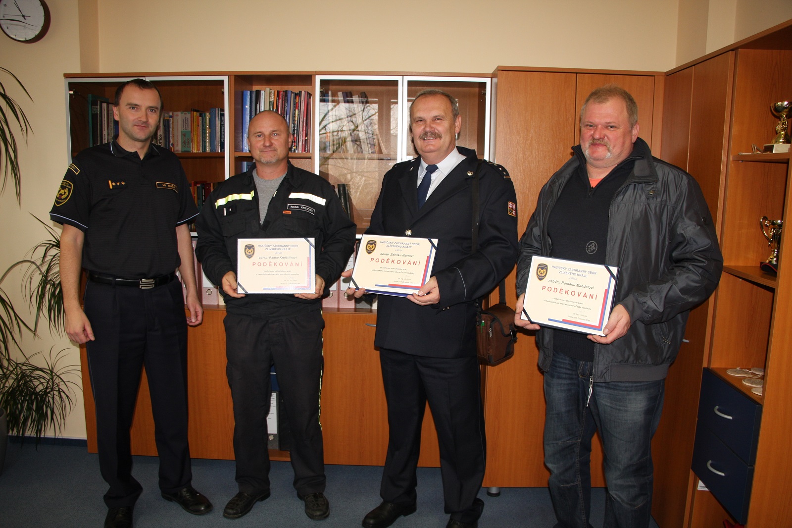 Ve středu 22. 11. 2017 poděkoval krajský ředitel Hasičského záchranného sboru Zlínského kraje, plk. Ing. Vít Rušar, třem příslušníkům za jejich dlouholetou a obětavou práci. Jejich služební poměr skončí s rokem 2017.