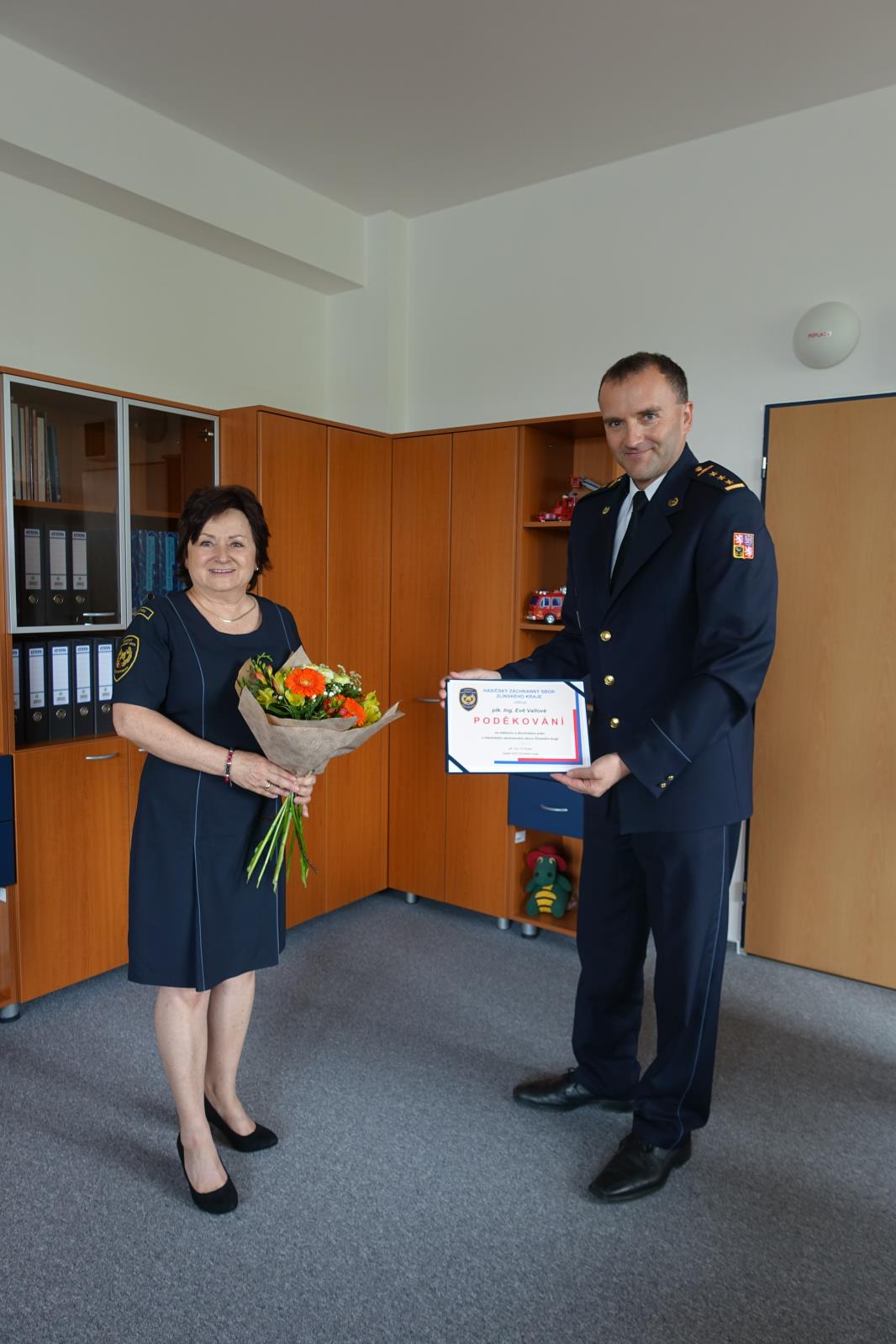 Po dvaceti letech končí plk. Ing. Eva Vallová, jejíž kariéra u HZS Zlínského kraje započala v březnu 2002, kdy byla přijata do služebního poměru na pozici kontrolor. Od roku 2007 pracovala jako interní auditorka. O necelé dva roky později byla ustanovena na post ředitelky odboru provozního a správy majetku. Následně vyhrála výběrové řízení a od prosince 2012 až dodnes vykonávala pozici vedoucí oddělení provozního a správy majetku.