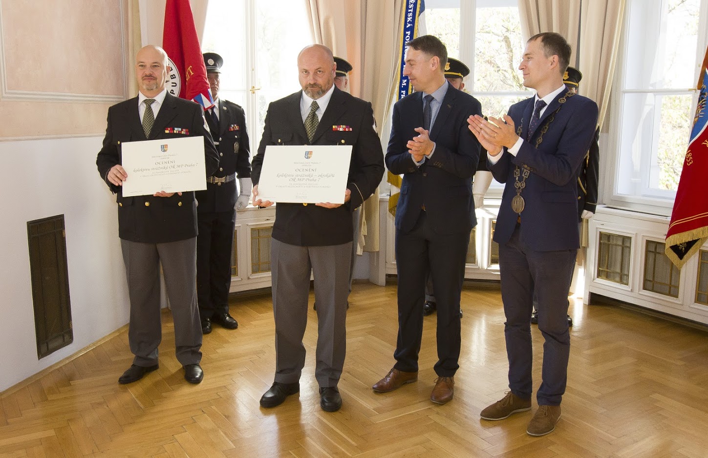 Medaile a vyznamenání za mimořádné zásluhy v oblasti bezpečnosti, veřejného pořádku a požární ochrany převzalo z rukou starosty MČ Praha 7 Jana Čižinského a místostarosty Ondřeje Mirovského 15 příslušníků Policie ČR, 10 hasičů a 17 příslušníků Městské policie hl. m. Prahy. Oceněny byly také celé kolektivy na úrovni obvodních ředitelství i místních služeben.