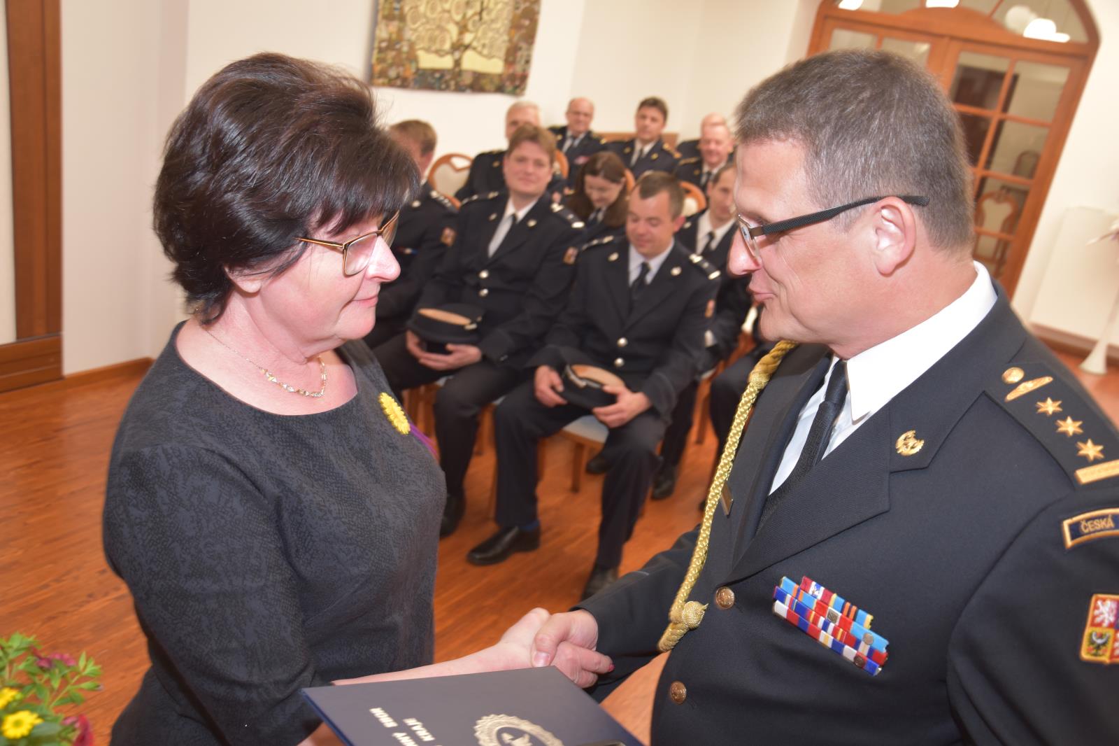 Pamětní medaili krajského ředitele HZS Pardubického kraje obdržela během ceremoniálu také starostka Mgr. Magdaléna Peterková. Od samého jmenování na nejvyšší post ve městě, si paní Peterková našla velmi kladný a profesionální vztah, jak k profesionálním, tak dobrovolným hasičům. Zažila s hasiči opravdu pestré volební období. Například byla mezi prvními z vedení města u jednoho z největšího a nejnáročnějšího zásahu v České Třebové – u požáru izolace střechy panelového domu dne 3. června 2019. Zajistila 18 jednotkám požární ochrany celkový servis, nouzové ubytování pro osoby postižené požárem a velmi vstřícně spolupracovala při samotné likvidaci této mimořádné události. Dalším opravdu velmi náročným obdobím byla pro paní starostku i pro nás pandemie Covid-19 a v neposlední řadě děkují hasiči za vynikající spolupráci při zřízení a činnosti centrálního skladu v České Třebové pomoci Ukrajině. Paní starostka nás podpořila i při oslavách 50. výročí založení profesionálních hasičů v Ústí nad Orlicí.