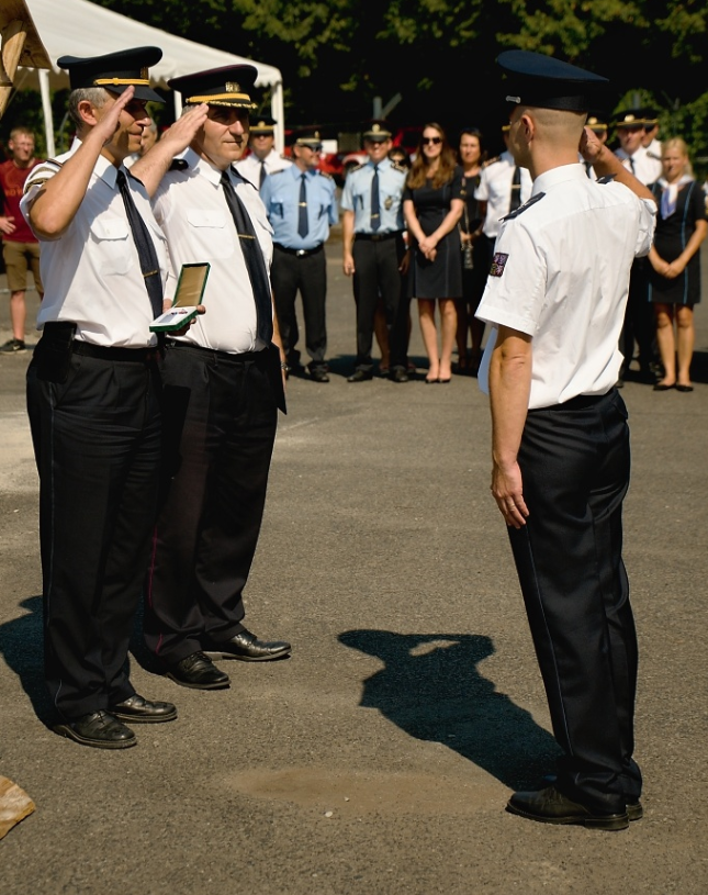 udělení medailí „Za věrnost" III. stupně dvěma příslušníkům sboru plk. Ing. Mgr. Jiřímu Pokornému a nstržm. Martinu Hodačovi, a také