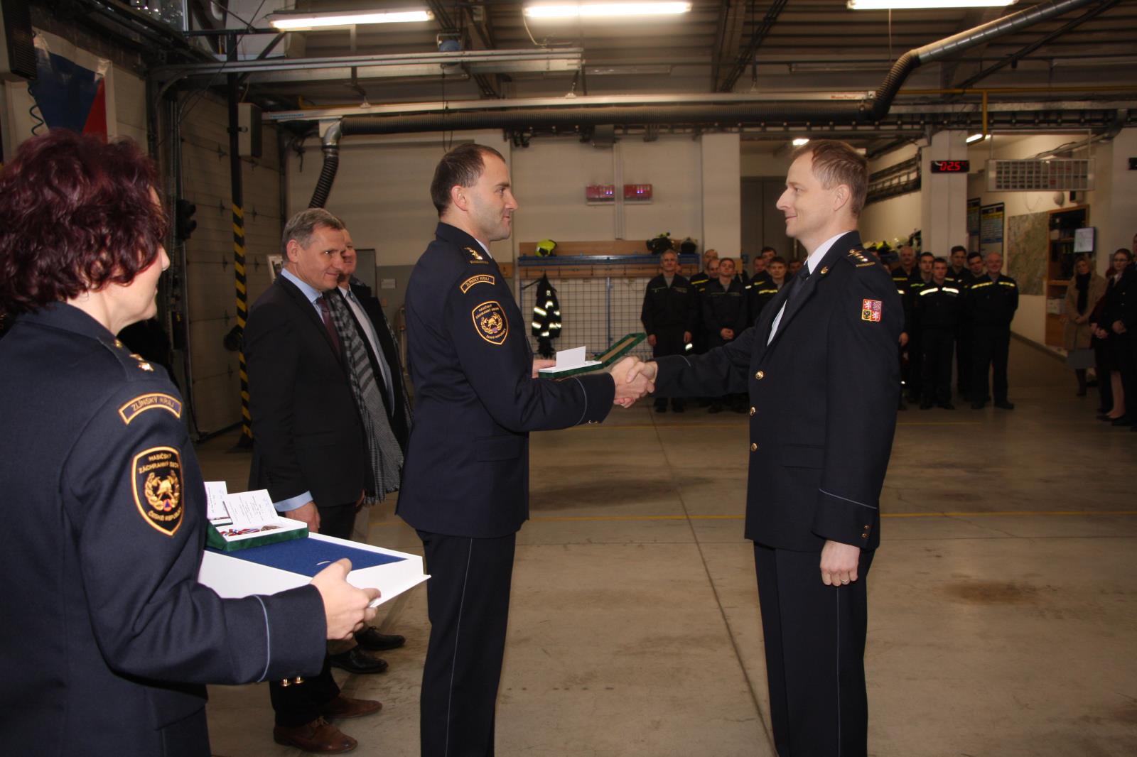 Součástí slavnostního nástupu bylo také ocenění příslušníků Hasičského záchranného sboru Zlínského kraje za věrnost ve službě profesionálních hasičů.