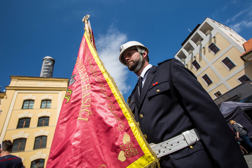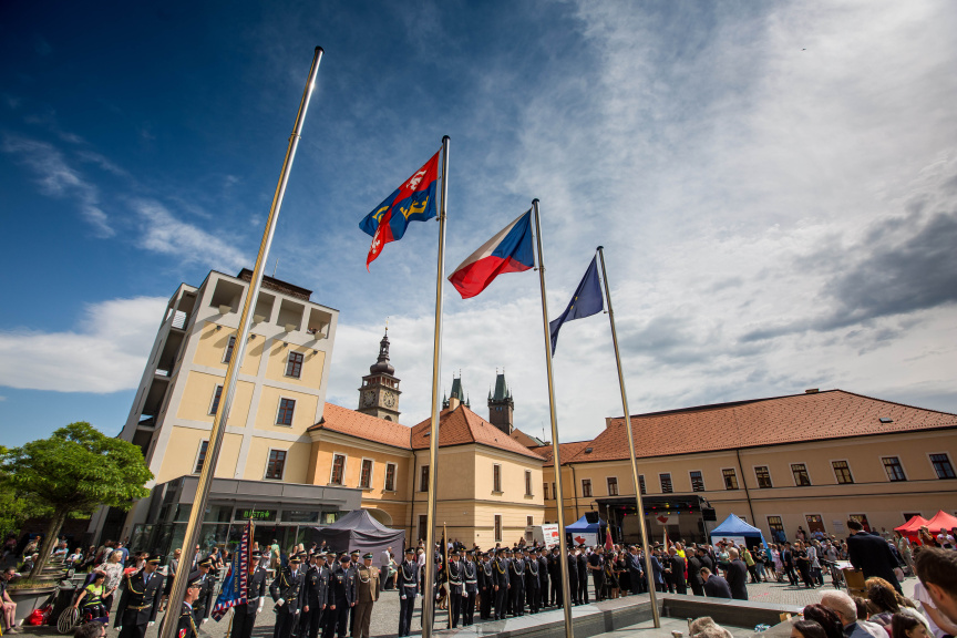 Státní svátek , 8.května 2018, Den vítězství , se na Pivovarském náměstí v historickém centru Hradce Králové nesl již tradičně v duchu slavnostního shromáždění členů záchranných složek integrovaného záchranného systému Královéhradeckého kraje a složení služebního slibu nových příslušníků Hasičského záchranného sboru Královéhradeckého kraje.
