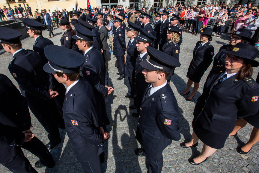 Na závěr ceremoniálu složilo čtrnáct nových příslušníků a příslušnic HZS Královéhradeckého kraje slavnostní slib a zazněla státní hymna České republiky.