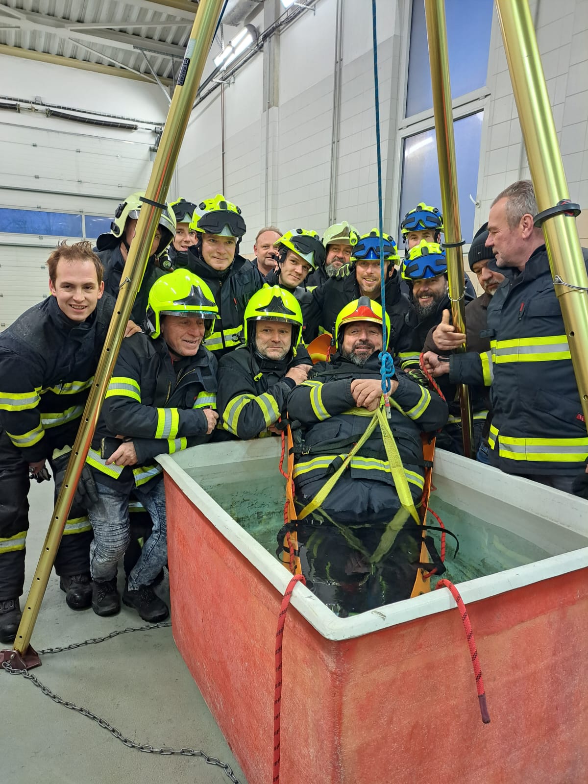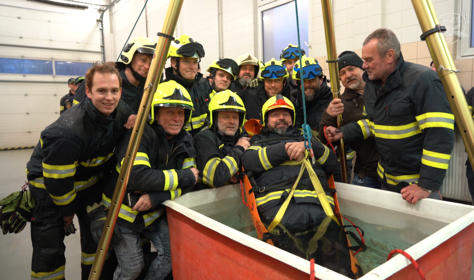 Šumperský velitel čety směny A Pavel Bittner (v nádrži)