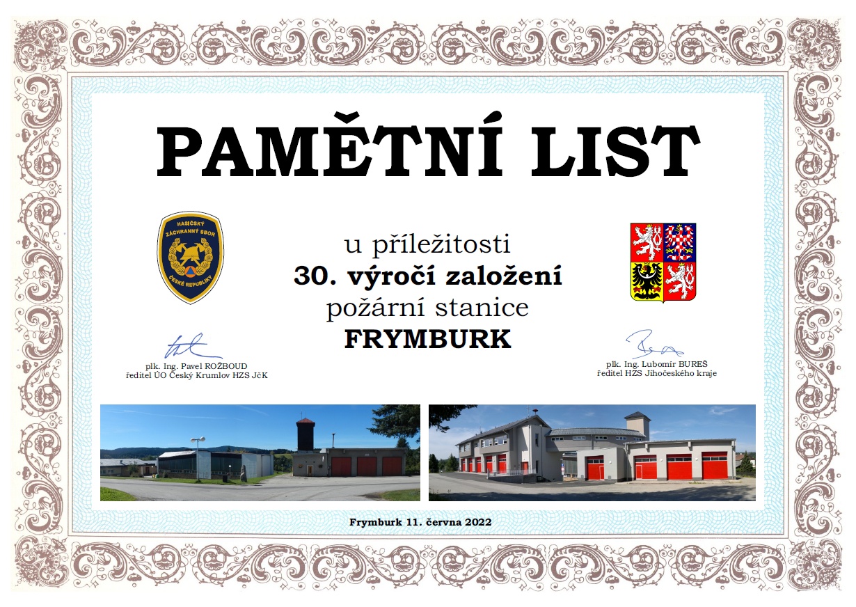 (autor textu: plk. Ing. Pavel Rožboud, ředitel HZS JčK ÚO Český Krumlov)