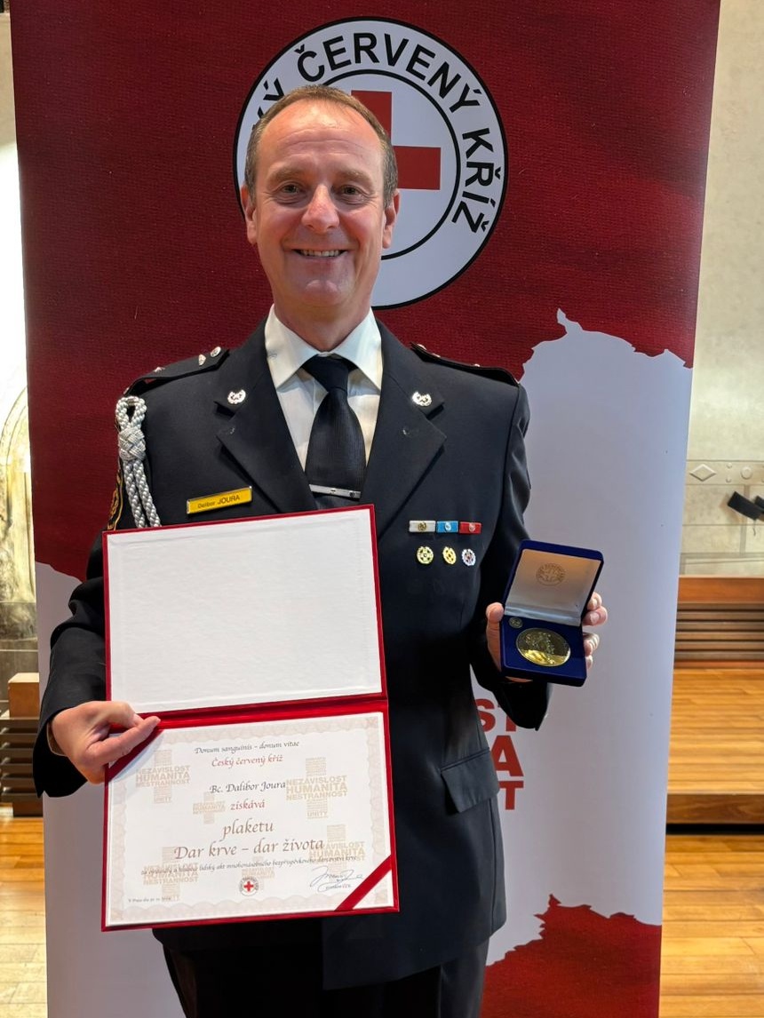Nejvyšším vyznamenáním dárcům krve byl na konci listopadu v Betlémské kapli v Praze oceněn dlouholetý příslušník našeho sboru pprap. Bc. Dalibor Joura ze stanice Olomouc.