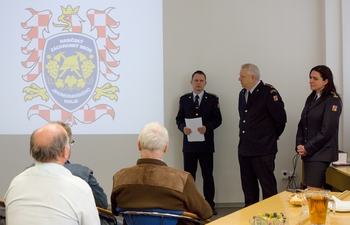 Na hasičské stanici ve Vyškově se v pátek 8.února 2019 oceňovalo. Ředitel HZS Jihomoravského kraje předal medaile zachráncům dvou osob u požáru osobního auta. Příjemné setkání dnes čekalo ředitele HZS Jihomoravského kraje plk. Jiřího Pelikána a ředitelku kanceláře krajského ředitele plk. Marii Staňkovou na stanici ve Vyškově. Seznámili se s hrdiny neobvyklé události, která se stala v lednu v obci Hoštice-Heroltice. V automobilu, který tehdy začal po zdravotní indispozici řidiče-seniora hořet, zůstalo kromě něj také asi dvouleté děvčátko. Nezvyklé situace si všiml soused postiženého František Paštěka a přispěchal na pomoc. Z vozidla vytáhl dítě i bezvládného seniora. Pokusil se vozidlo hasit, odtlačil jej dále od domu a zahájil nepřímou srdeční masáž. Na místo vzápětí dorazili dva dobrovolní hasiči, kteří bydlí v blízkosti. Jaroslav Skácel a Karel Skácel pokračovali v resuscitaci a komunikovali s tísňovou linkou ZZS. Senior byl následně předán do péče záchranné služby. Děvčátko vyvázlo z události bez zranění. V pátek 8.února 2019 se František Paštěka a Jaroslav Skácel opět setkali a seznámili se i se zasahující směnou. Ředitel jihomoravských profesionálních hasičů plk. Jiří Pelikán nasazení pana Františka a obou dobrovolných hasičů vyzdvihl: „Moc děkuji za pohotovost a za ochotu pomoci sousedovi v nouzi. Tato pohotová pomoc znamenala záchranu dvou lidských životů. Za to jménem hasičského záchranného sboru děkuji, a protože tento čin není běžný, tak jsme se rozhodli ocenit jej jako mimořádně záslužný čin pamětní medailí Hasičského záchranného sboru Jihomoravského kraje.“ Udělení medailí se účastnili i zástupci obce Hoštice-Heroltice a ředitel ÚO Vyškov plk. Václav Kovář. Všichni zúčastnění měli možnost pohovořit si o celé události a následně si prohlédnout zásahovou techniku. Karel Skácel se nemohl dnešní akce účastnit, ale také jemu byla medaile udělena. Zdroj: Jaroslav Mikoška firebrno.cz Foto: HZS Jihomoravského kraje FOTOGALERIE