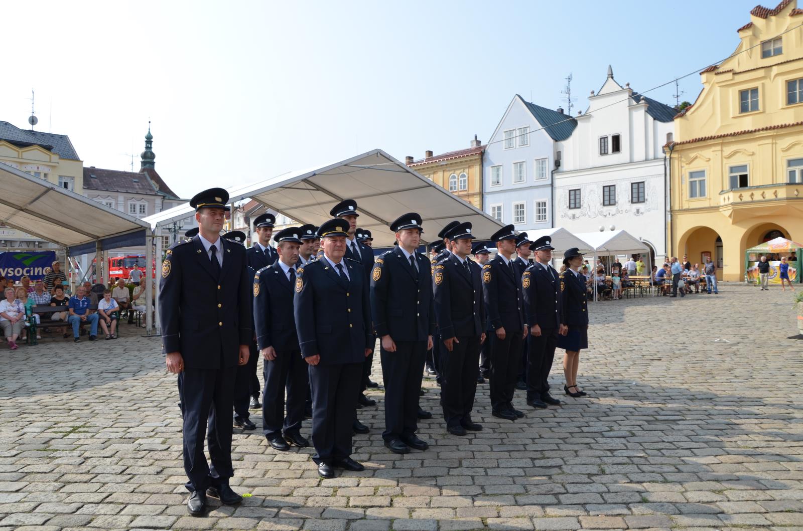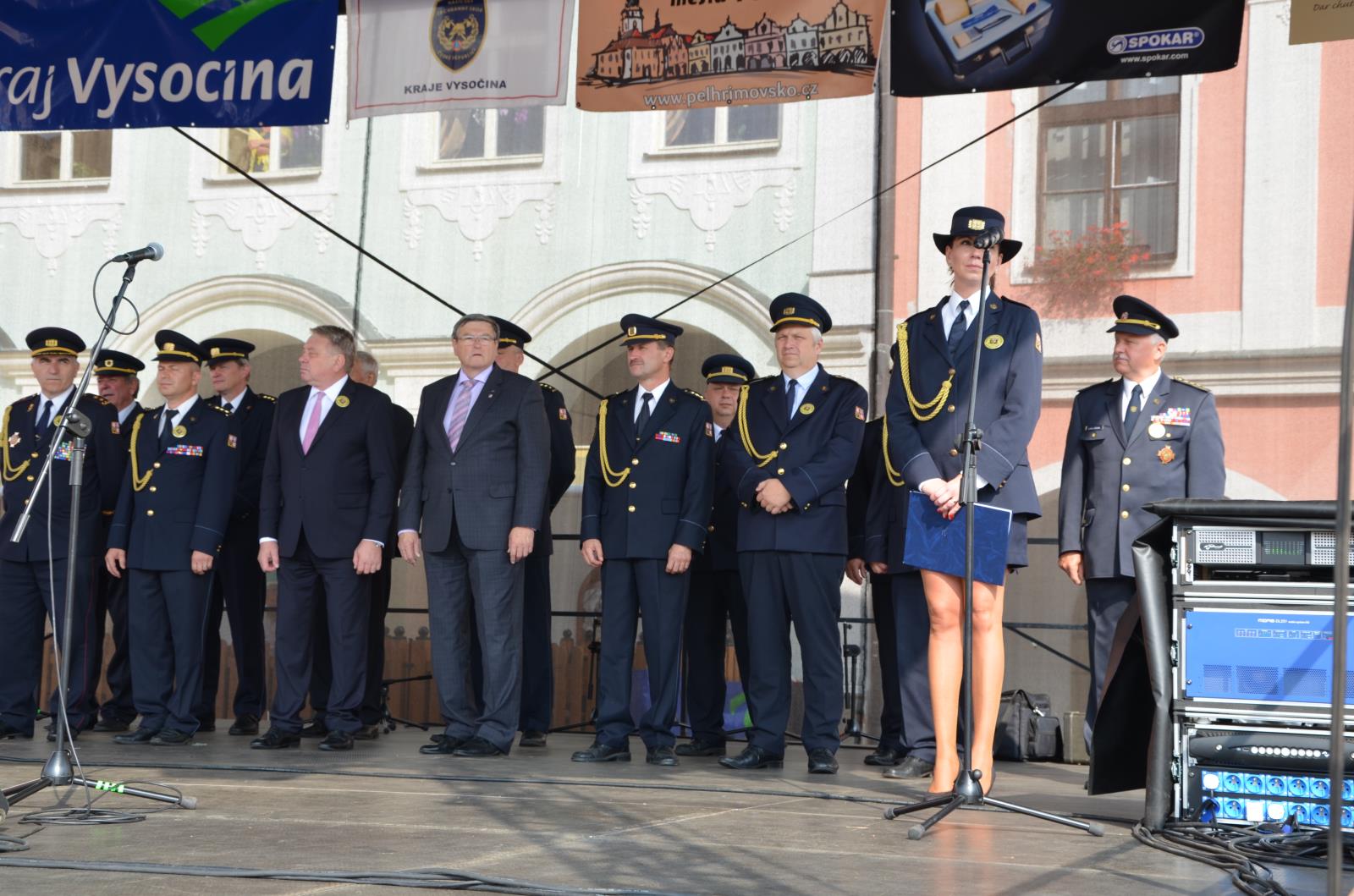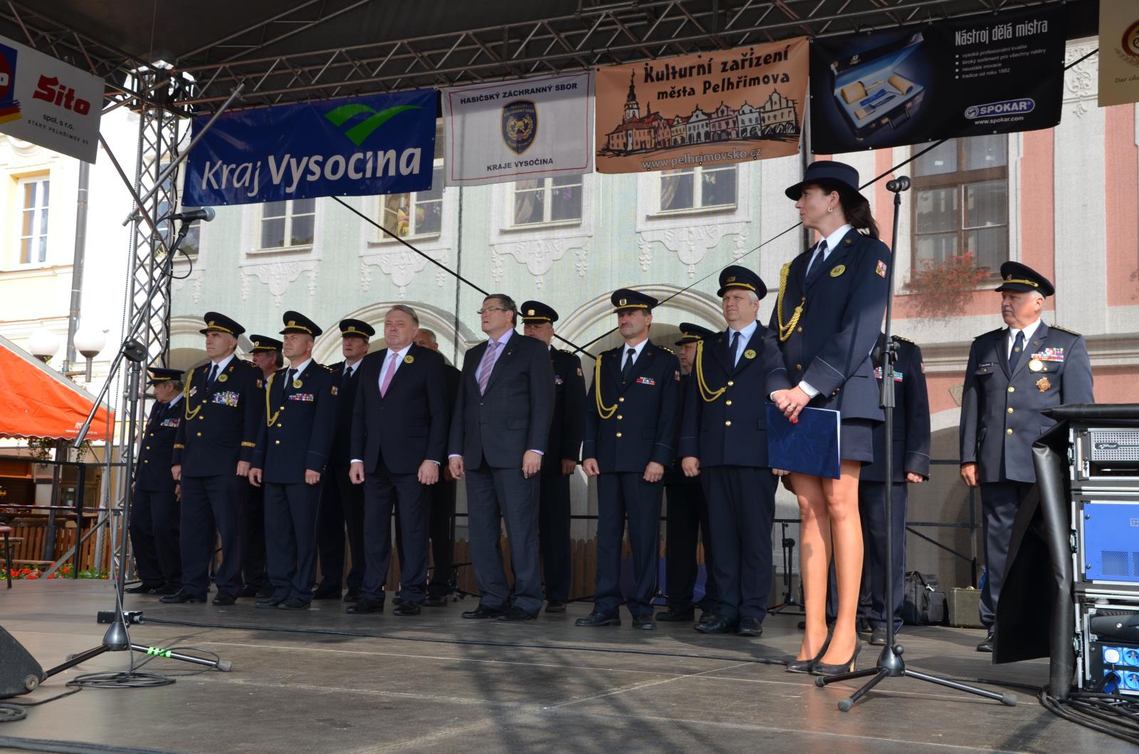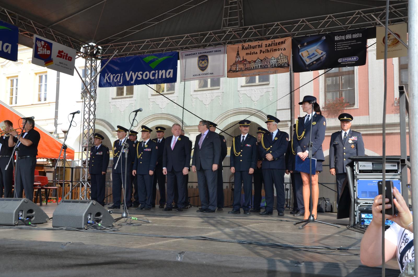 V neděli přivítal publikum na náměstí hejtman Kraje Vysočina Jiří Běhounek společně s generálním ředitelem Hasičského záchranného sboru České republiky genmjr. Drahoslavem Rybou, starostou města Pelhřimov Františkem Kučerou a krajským ředitelem Hasičského záchranného sboru Kraje Vysočina plk. Petrem Benešem. Před zraky dalších významných hostů složili noví příslušníci Hasičského záchranného sboru Kraje Vysočina slavnostní slib. Příslušníci se v něm zavázali, že budou dodržovat právní a služební předpisy, plnit rozkazy nadřízených, zachovávat dobrou pověst sboru, ale hlavně, že budou vše plnit řádně a svědomitě, a že při ochraně zájmů České republiky nebudou váhat nasadit i vlastní život. Po složení slavnostního slibu zazněla hymna České republiky pod taktovkou šéfdirigenta Václava Paličky a za zpěvu plk. Mgr. Libora Zikeše.