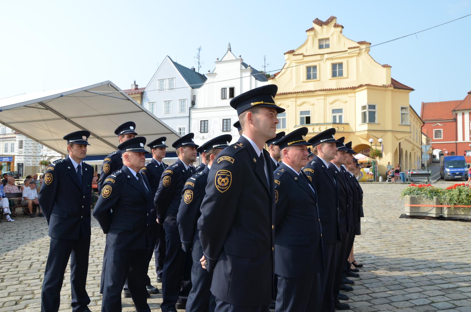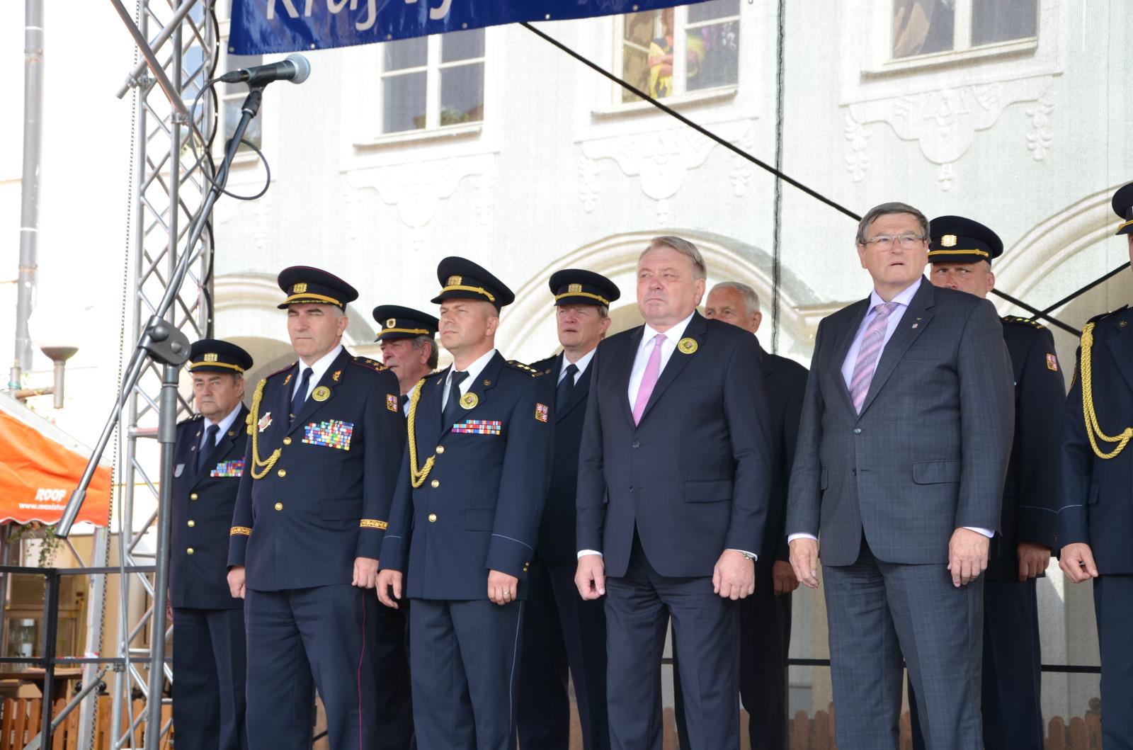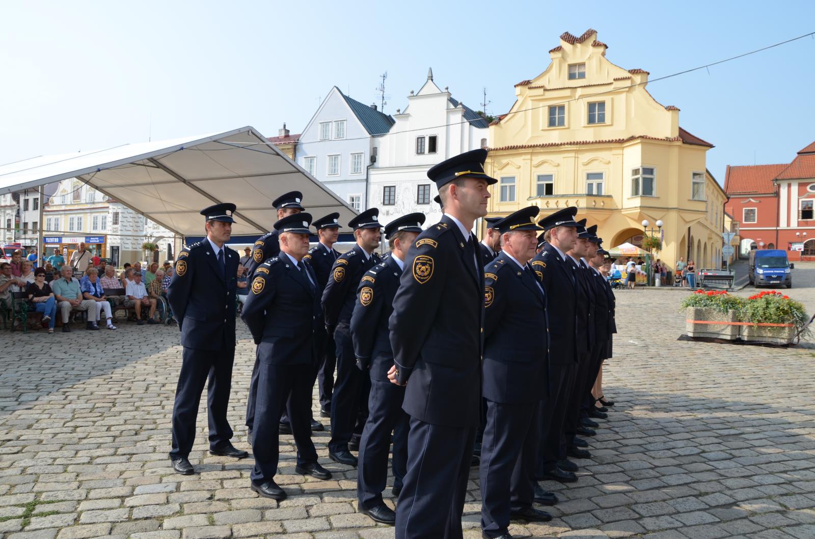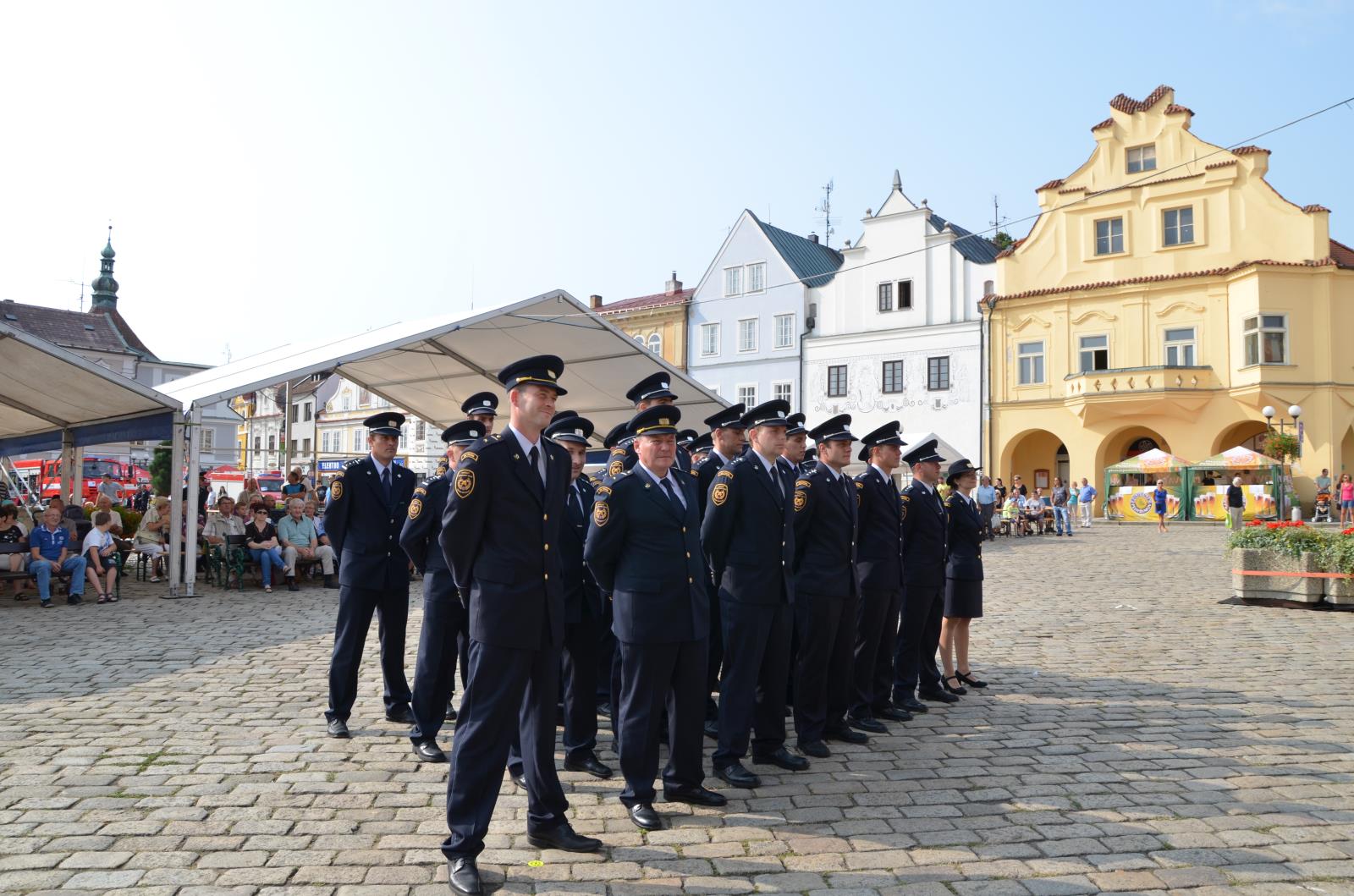 V neděli přivítal publikum na náměstí hejtman Kraje Vysočina Jiří Běhounek společně s generálním ředitelem Hasičského záchranného sboru České republiky genmjr. Drahoslavem Rybou, starostou města Pelhřimov Františkem Kučerou a krajským ředitelem Hasičského záchranného sboru Kraje Vysočina plk. Petrem Benešem. Před zraky dalších významných hostů složili noví příslušníci Hasičského záchranného sboru Kraje Vysočina slavnostní slib. Příslušníci se v něm zavázali, že budou dodržovat právní a služební předpisy, plnit rozkazy nadřízených, zachovávat dobrou pověst sboru, ale hlavně, že budou vše plnit řádně a svědomitě, a že při ochraně zájmů České republiky nebudou váhat nasadit i vlastní život. Po složení slavnostního slibu zazněla hymna České republiky pod taktovkou šéfdirigenta Václava Paličky a za zpěvu plk. Mgr. Libora Zikeše.