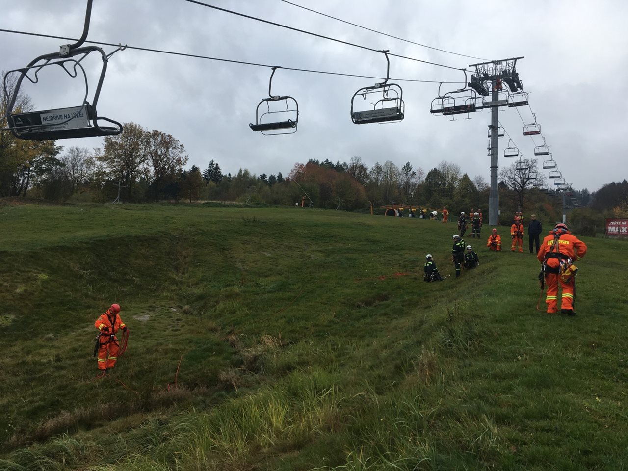Ve SKI areálu Monínec na Příbramsku se v úterý 24. října uskutečnil výcvik záchrany osob z lanové dráhy při náhlé poruše její provozuschopnosti.  Výcviku se zúčastnilo celkem dvacet hasičů-lezců. Kromě členů lezeckých skupin Hasičského záchranného sboru Středočeského kraje z územních odborů Příbram a Benešov přijeli na speciální výcvik také lezci ze sousedního územního odboru Tábor HZS Jihočeského kraje. K rychlému provedení záchranných prací je nutné současně nasadit minimálně tři lezecké skupiny a za předpokladu příznivých povětrnostních podmínek i vrtulníky Policie ČR a Armády ČR. K transportu lezců po sjezdovce jsou využíváni rovněž zaměstnanci areálu, kteří disponují sněžnými skútry a rolbami. Výcvik na Monínci byl zaměřen na techniku provedení záchrany ze země. Ta spočívá ve vystoupání lezce po sloupu lanové dráhy, odkud se za použití speciální kladky spustí po ocelovém vodícím laně nad sedačku s cestujícími. Jakmile se k nim lezec dostane, začne je přes evakuační postroj postupně spouštět na zem, kde si osoby přebírají do péče další hasiči z řad profesionálních a dobrovolných jednotek, příp. posádky zdravotnické záchranné služby. Jelikož se jedná o velmi specifický druh zásahu, každý rok hasiči prověřují nejen technické provedení záchrany, ale také součinnost jednotlivých lezeckých skupin. mjr. Bc. Pavel Maňas vedoucí pracoviště IZS a služeb územní odbor Příbram Zdroj: Ladislav Holomčík – tiskový mluvčí HZS Středočeský kraj Foto: HZS Středočeský kraj