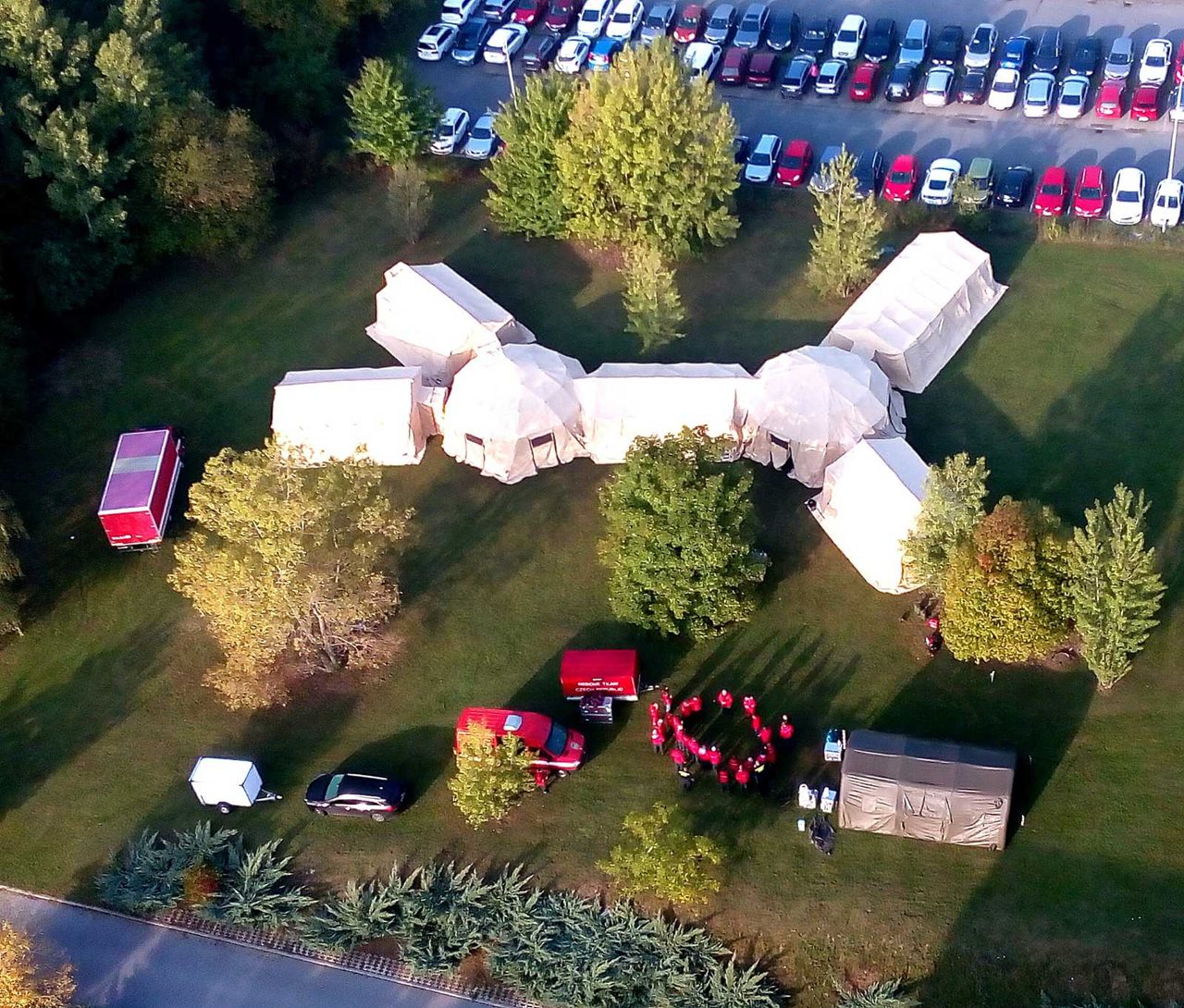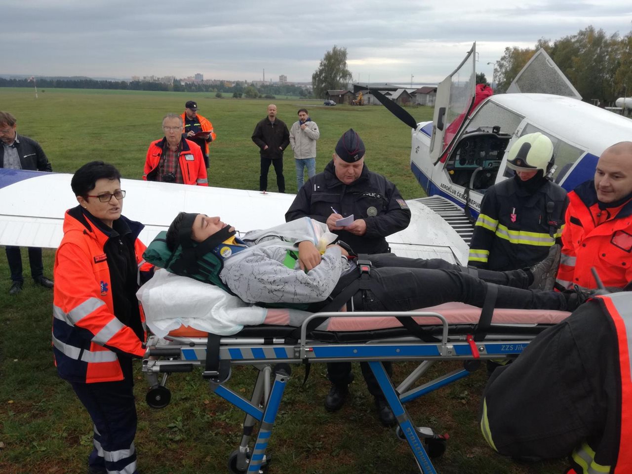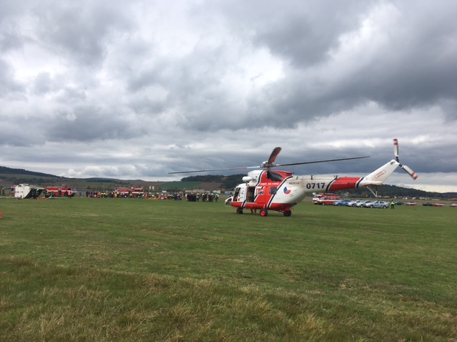 Ve středu 11. října 2017 v době od 13:00 do 15:00 proběhlo na letišti Chaloupky u Klatov taktické cvičení složek IZS na téma nehoda malého letadla s parašutisty. Pro účely cvičení byla nasimulovaná situace, kdy během výsadkového letu selhaly motory letadla Skyvan SC7 a piloti nezvládli nouzově přistát. Při nehodě zahynuli dva členové posádky a 22 osob utrpělo poranění různě závažného charakteru. Cvičení se celkem zúčastnilo bezmála 200 osob, z toho 26 klatovských profesionálních i dobrovolných hasičů a hasič-letecký záchranář z Přeštic na palubě vrtulníku LVS AČR Líně. ZZS Plzeňského kraje vyslalo na cvičení posádky z výjezdových stanovišť Klatovy, dále z Domažlic, Nepomuku, Nýrska, Plzně-Bory, Přeštic a Sušice. Policie ČR na cvičení vyslala hlídky z obvodních oddělení Klatovy, Plánice a Švihov, příslušníky z Dopravního inspektorátu, psovody a technika OKT. Do cvičení se zapojila i Klatovská nemocnice a Fakultní nemocnice Plzeň. Chybět samozřejmě nemohl ani Ústav pro odborné zjišťování příčin leteckých nehod. Cvičení si kladlo mnohé cíle, mimo jiné procvičit a osvojit si taktiku a spolupráci složek IZS při letecké nehodě s větším počtem zraněných, procvičit třídění zraněných metodou START, vyhledávání zraněných osob a vyzvednutí osob z nepřístupného terénu pomocí vrtulníku LZS v součinnosti s hasičem-leteckým záchranářem. Zdroj: Mgr. Pavla Jakoubková, tisková mluvčí – HZS Plzeňského kraje Foto: HZS Plzeňského kraje