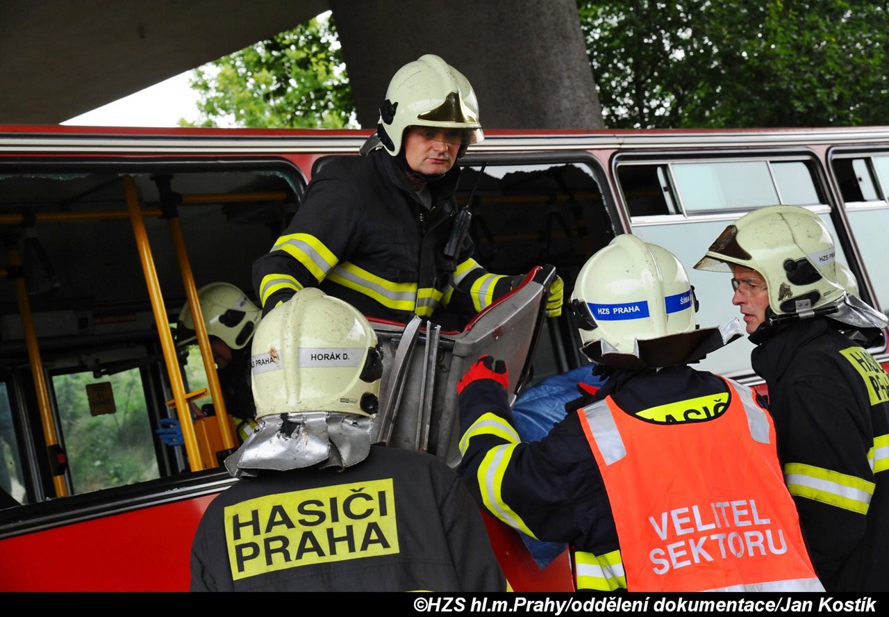 Nehoda autobusu s větším počtem zraněných osob byla námětem cvičení pražských hasičů