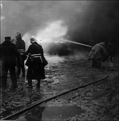 Vše, co bylo připraveno k výrobnímu zpracování, se ocitlo náhle v plamenech. Během několika málo minut od vzniku požáru už začaly barely vybuchovat. Sudy létaly vzduchem na značnou vzdálenost. To už ale byla na cestě hasičská pohotovost v čele s požárním radou Wagnerem a velitelem Veseckým. Prvním úkolem hasičů bylo zamezit rozšíření plamenů na hlavní výrobní trakt. Zaměstnance se podařilo včas dostat do bezpečí za cenu ztráty osobního majetku. Kdo by však v tuto chvíli myslil na svůj zimník?