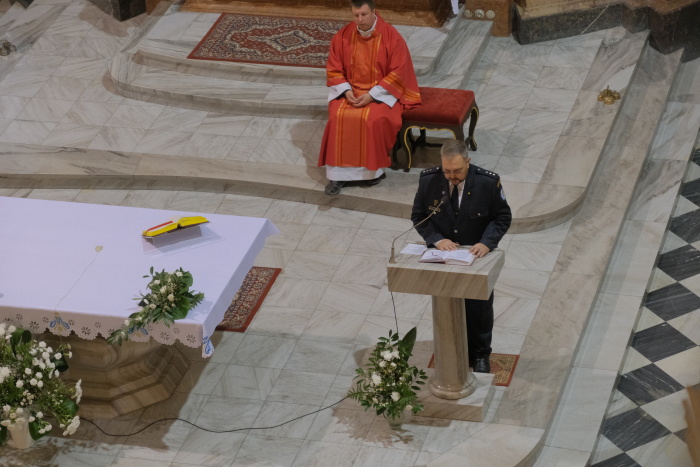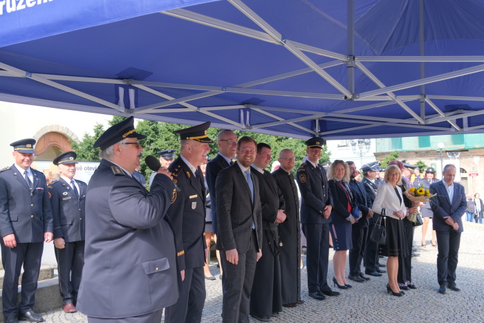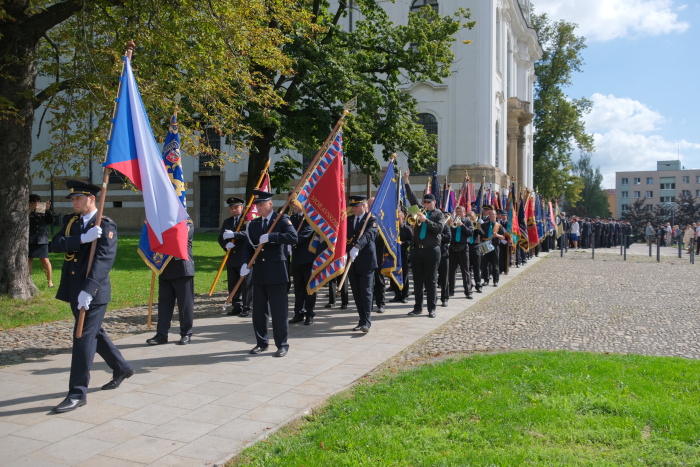 Mše i následného průvodu centrem okresního města z Mariánského na Zámecké náměstí, kde všechny prapory obdržely pamětní stuhu, se mj. zúčastnili senátor Parlamentu ČR Pavel Carbol, primátor Frýdku-Místku Michal Pobucký, předseda komise bezpečnosti a IZS Rady Moravskoslezského kraje Patrik Bocek, starosta krajského Sdružení hasičů Čech, Moravy a Slezska Leo Kuběna, ředitel HZS MSK brig. gen. Vladimír Vlček a ředitel SOŠ a VOŠ požární ochrany ve Frýdku-Místku plk. Radim Paloch.